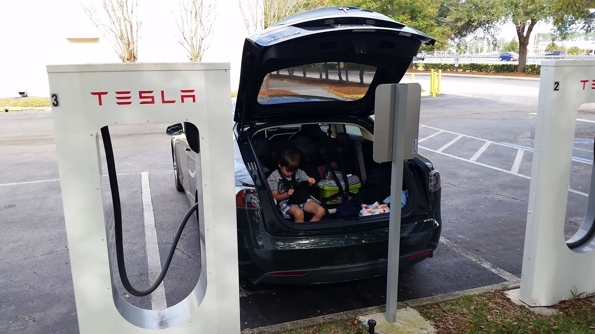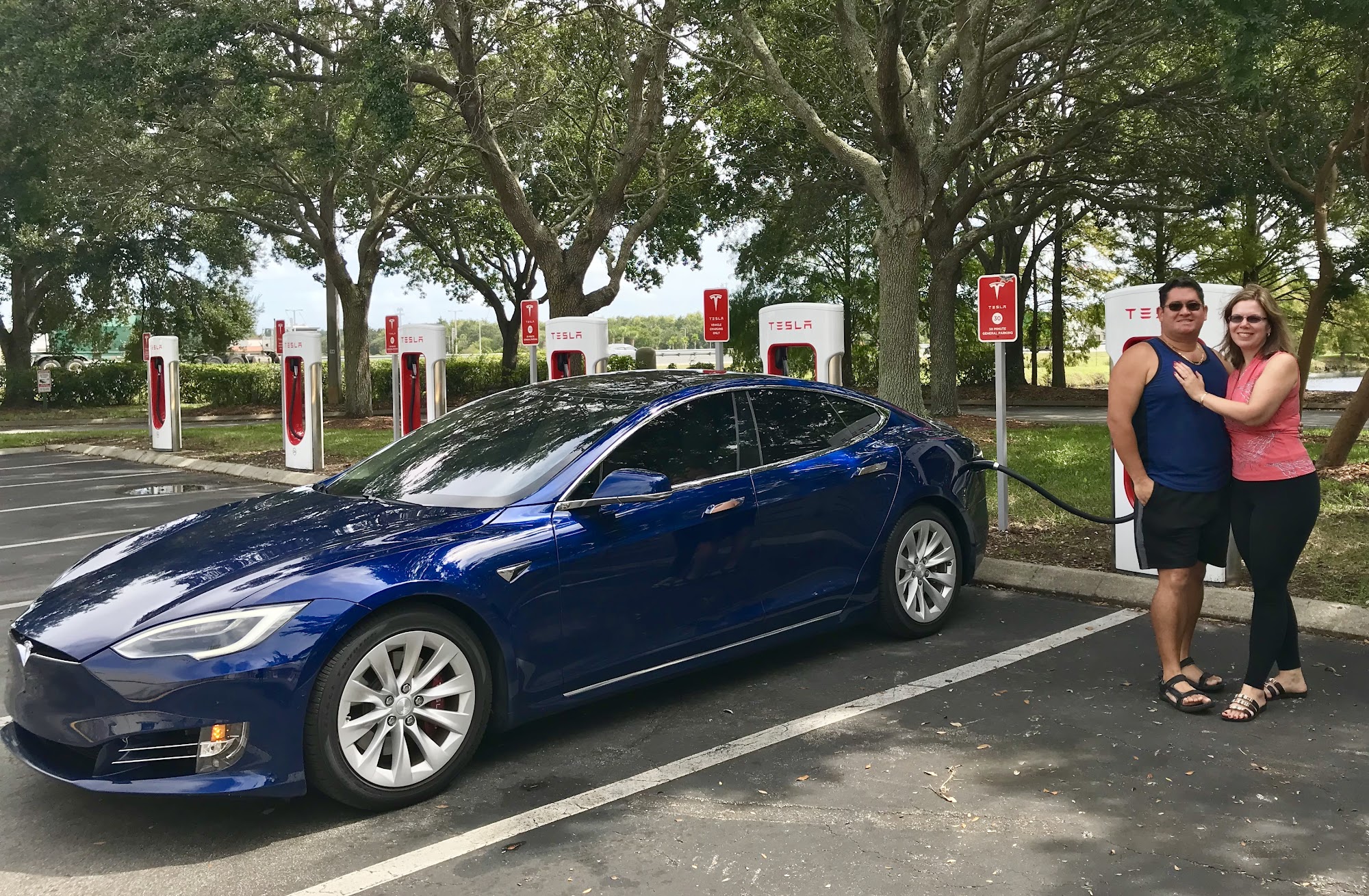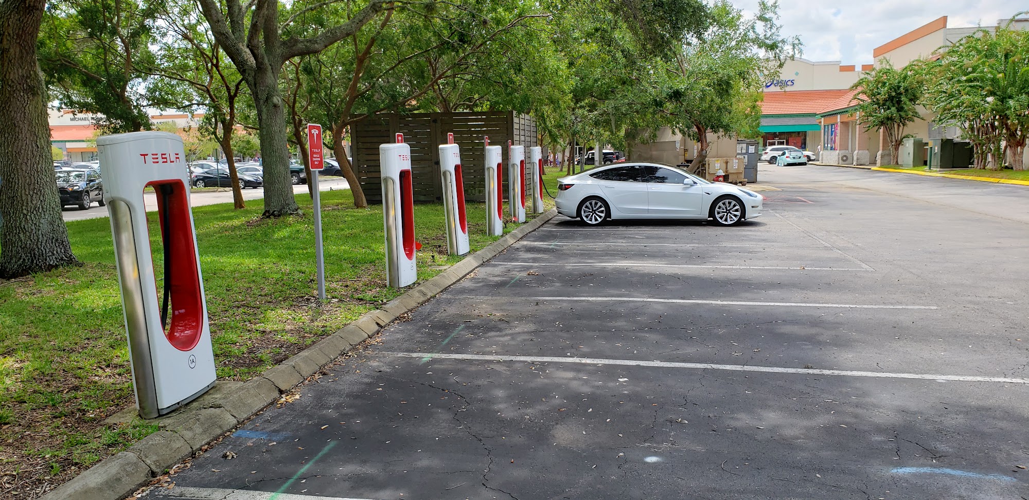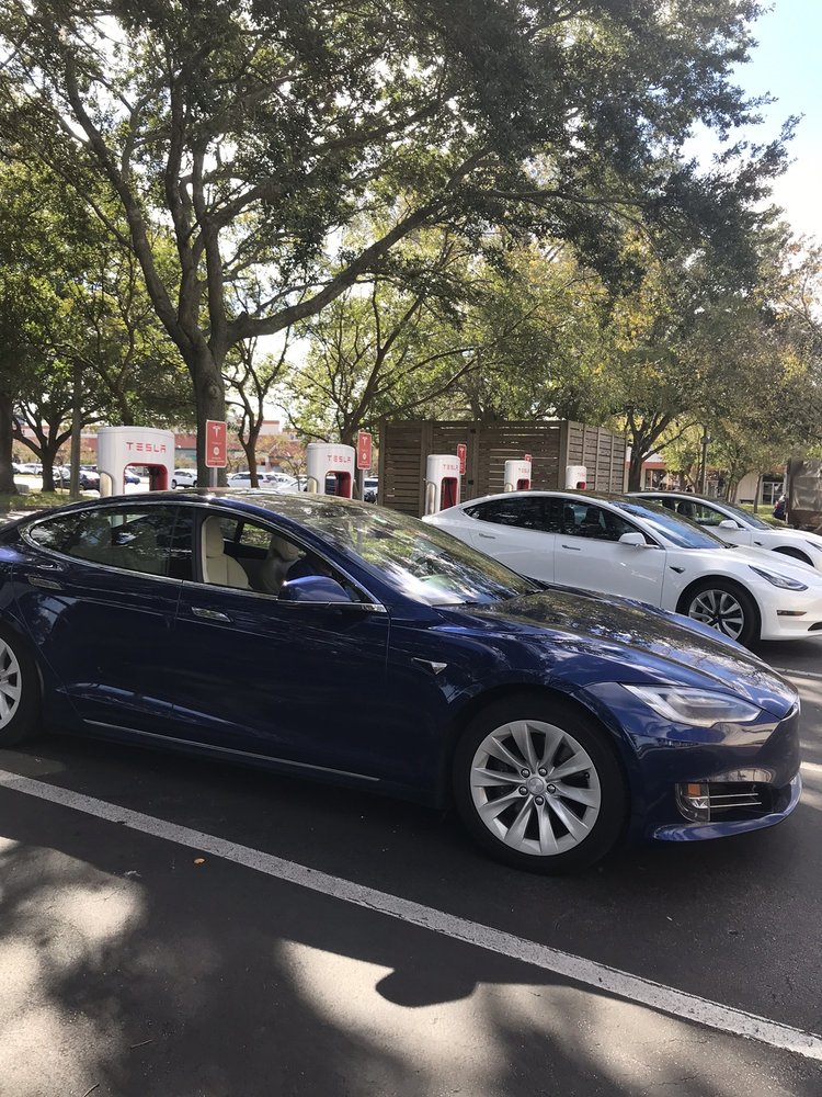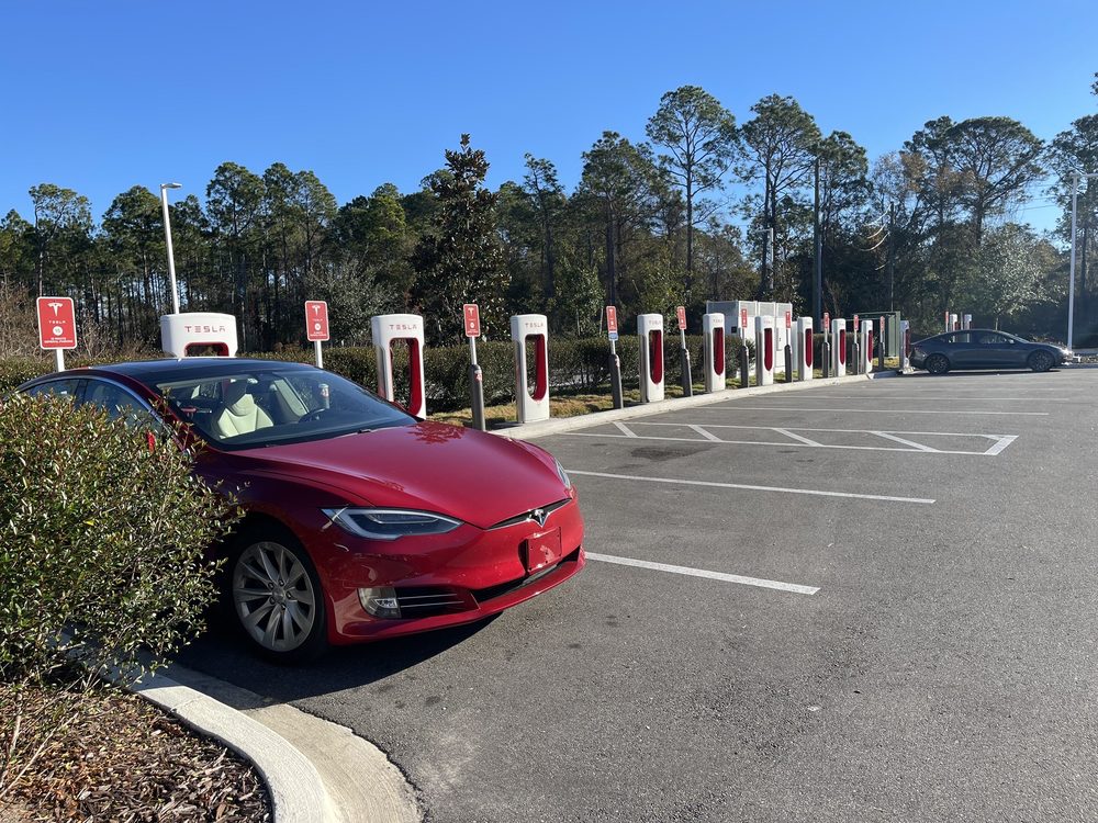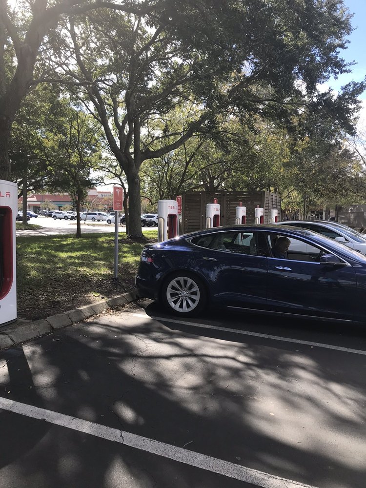 This Tesla EV charging station is conveniently located in the St Augustine Outlets just off of 95 on State Road 16. They have multiple stations and it is a good place to charge your vehicle while doing a bit of shopping.