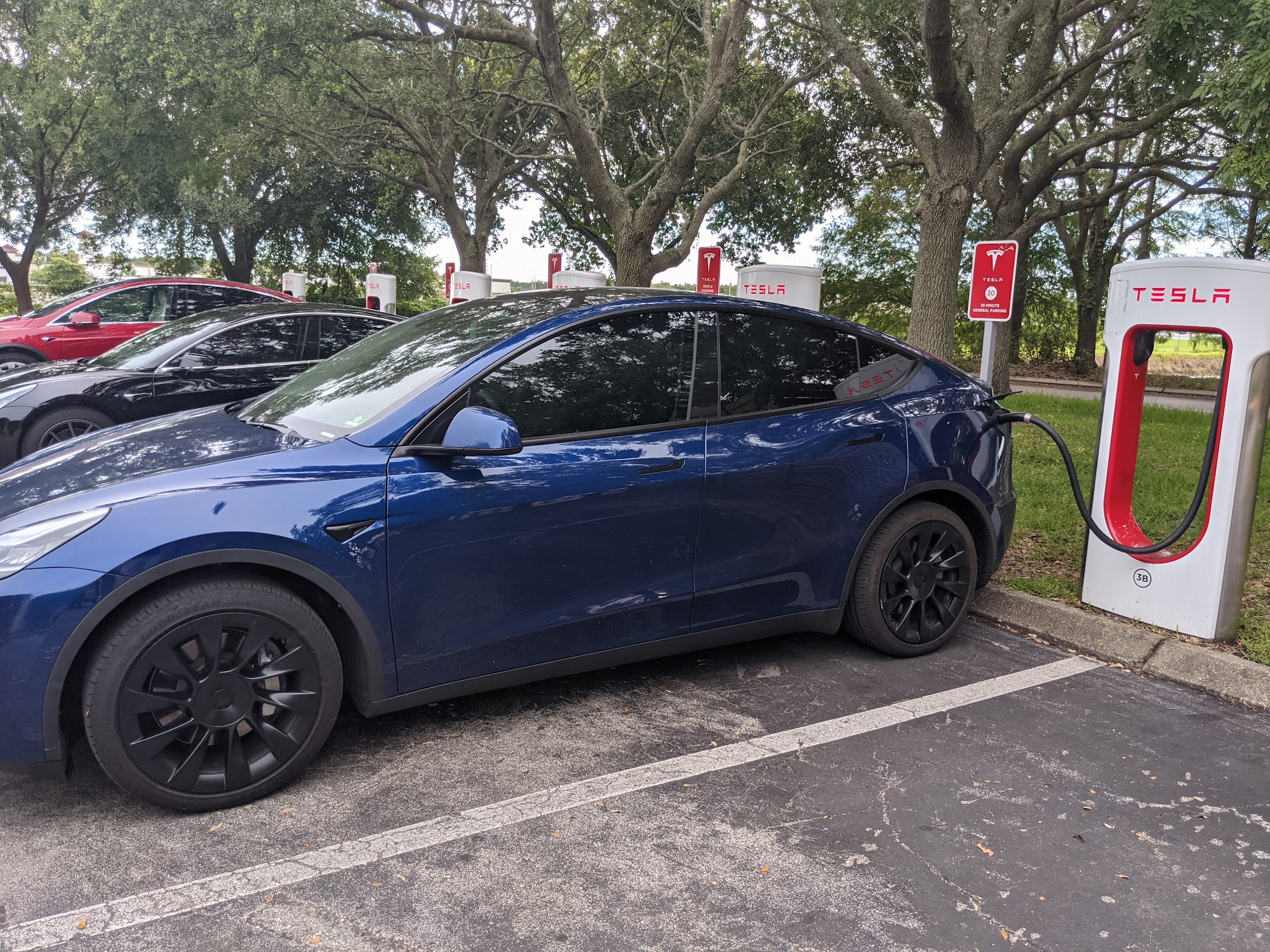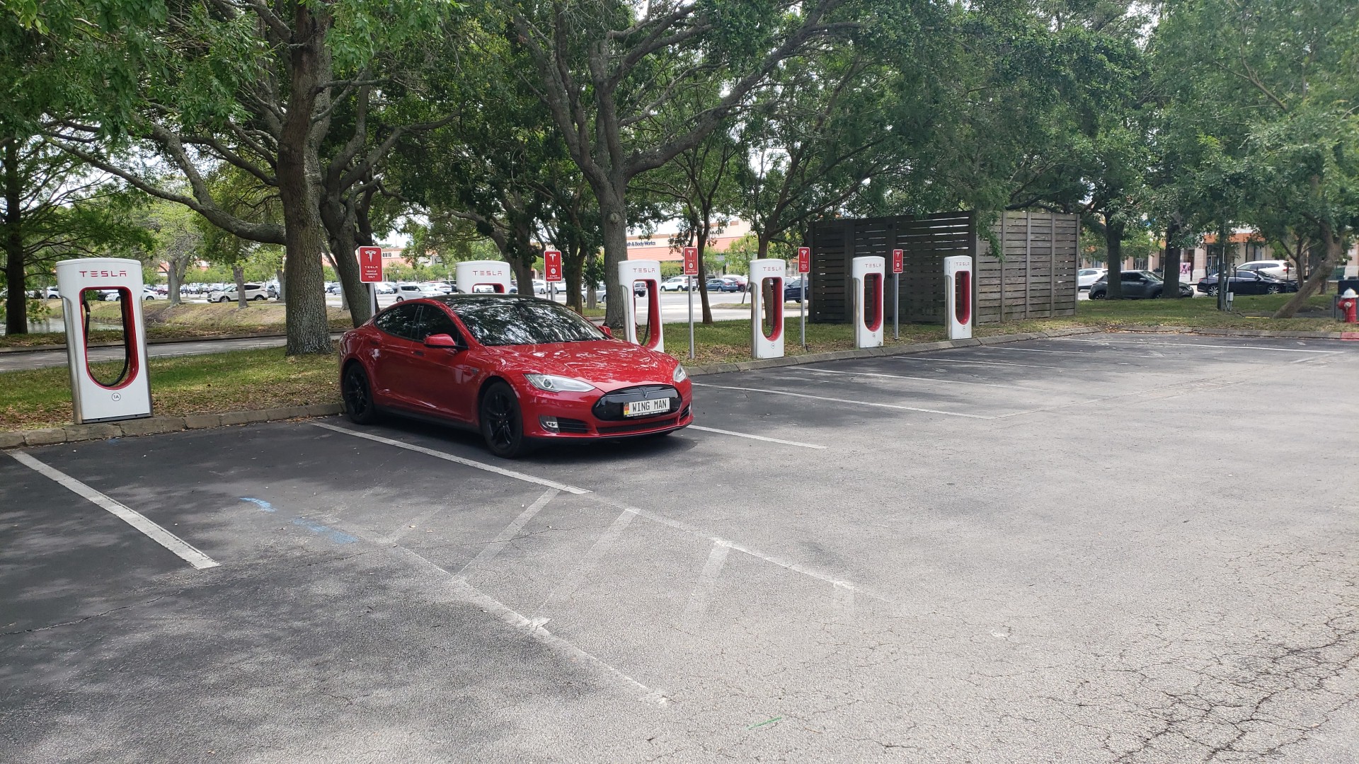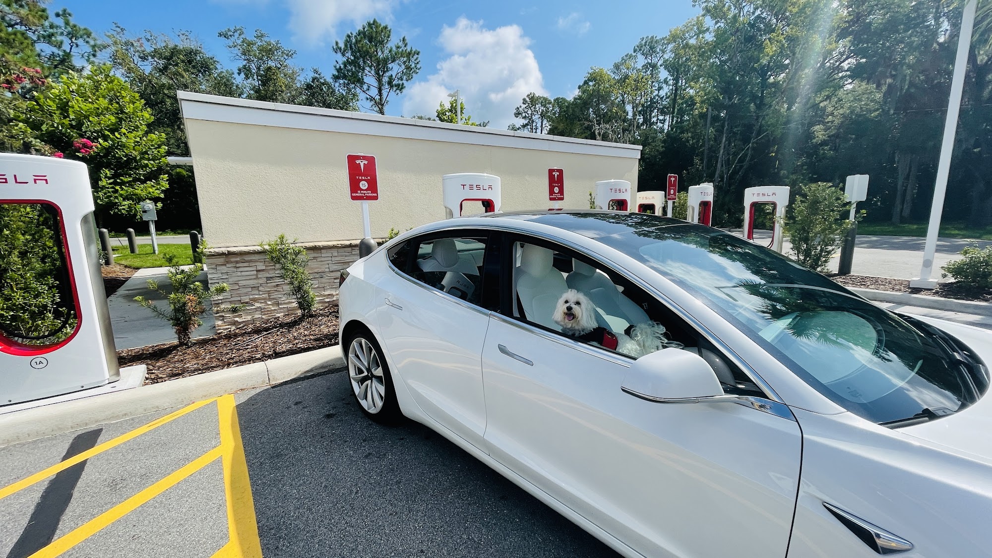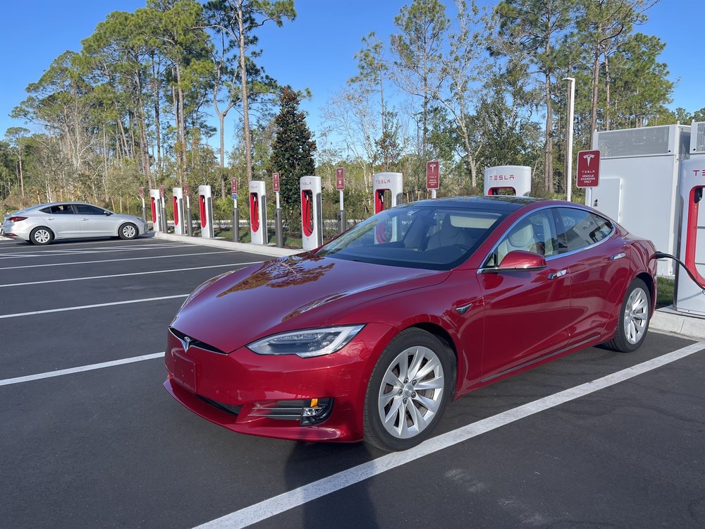 Tesla Supercharger is conveniently located in the St. Augustine Outlets, just off Interstate 95 on State Road 16. This charging station features multiple charging spots and provides a fast charging experience. The site is clean and safe, making it a comfortable stop for EV owners. It is situated in the center of a shopping plaza under trees, allowing for an easy walk to restrooms and the food court. Many shops nearby offer discounts to customers who show their fob. While some users noted that the navigation system can struggle to locate the chargers, the overall experience is positive, especially for those looking to combine charging with shopping. There was a minor inconvenience when the parking lot was being redone, requiring a detour, but this is manageable once familiar with the area. Overall, it's a great spot for Tesla drivers who want to charge while enjoying the nearby amenities.