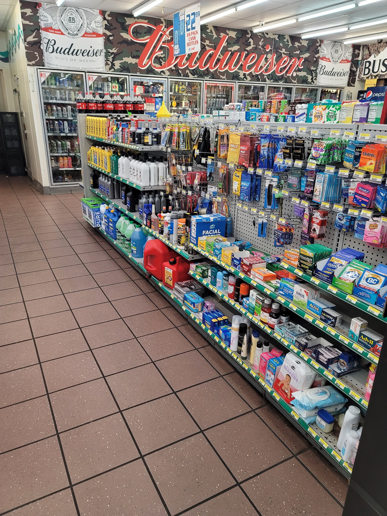 Convenient for gas and snacks pretty much anything. Friendly n welcoming clerk