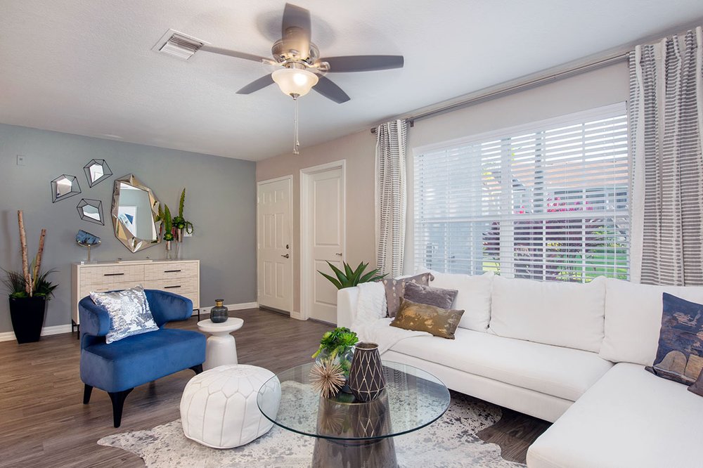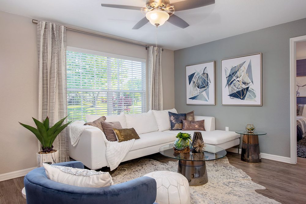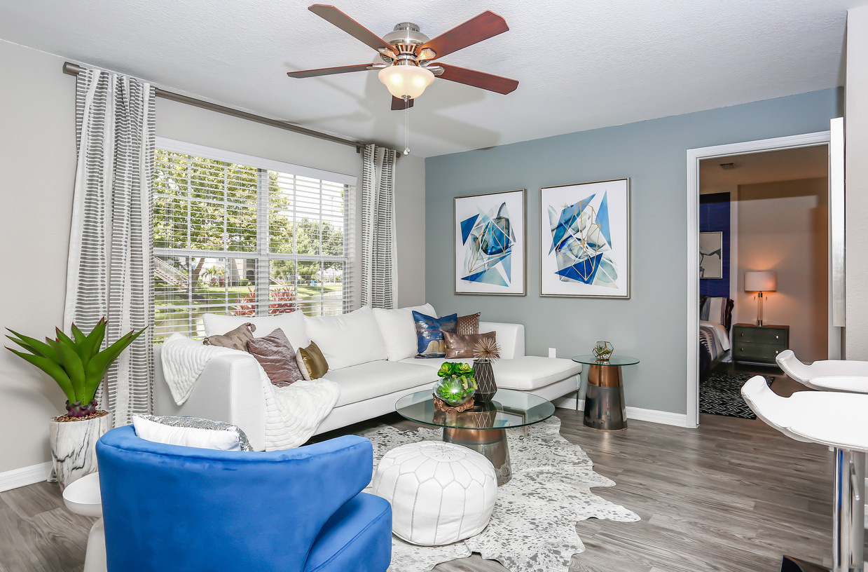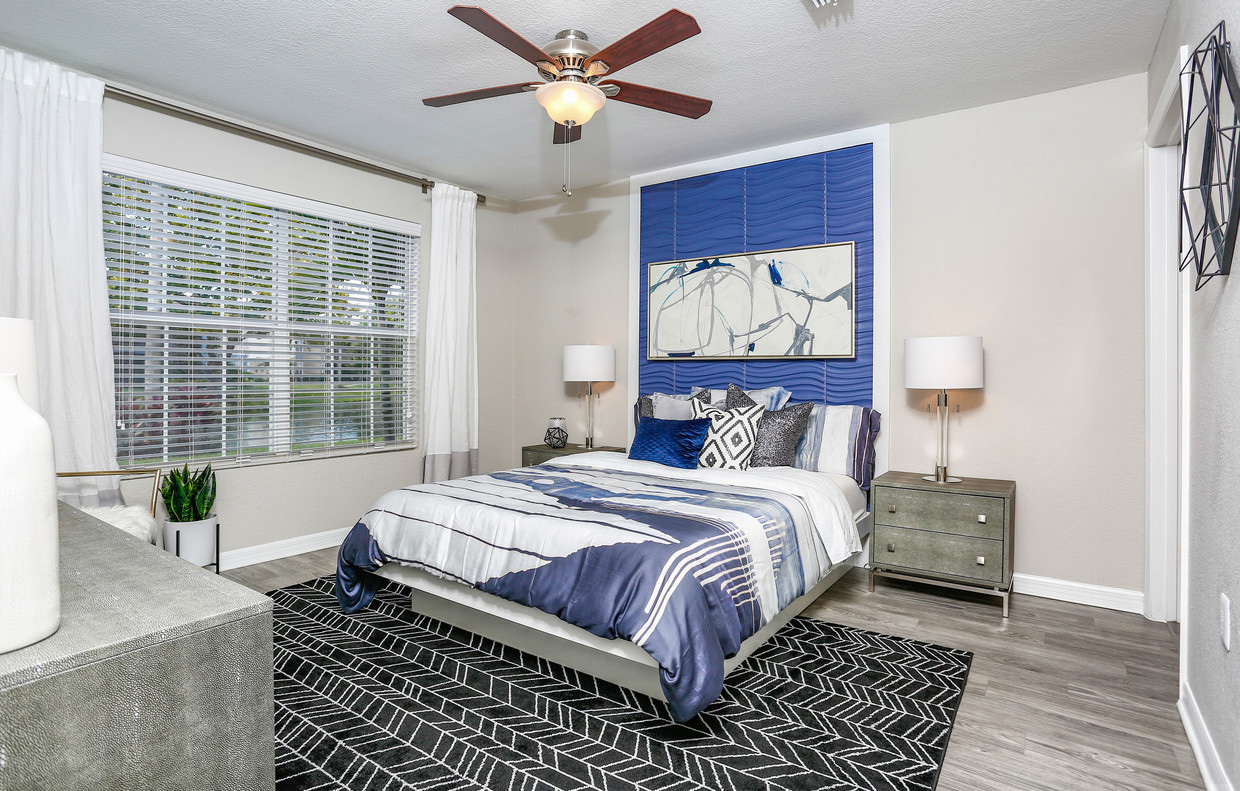 Soleil Blu Luxury Apartments in St. Cloud, Florida, offers a tranquil and beautiful living experience with lovely lake views. The spacious two and three-bedroom apartment homes feature an open concept layout with a unique designer touch, granite-style countertops, full-size washers and dryers, oversized walk-in closets, nest thermostats, and screened-in patios or balconies. The resort-style amenities include an expansive sun deck with a lakefront pool, a hammock garden, a fire pit, a 24-hour fitness gym, a bark park with an agility course, a playground, and a tennis court. The complex is well-maintained, providing a very nice, safe, and peaceful environment. Residents praise the excellent, helpful, and pleasant staff in the main office, who provide amazing customer service. The maintenance team is also noted as good, prompt, and timely. The community hosts lots of creative monthly events and often has food vendors. Its location is convenient, within walking distance of shopping and dining, and just 5 to 10 minutes from the expressway. While the gym equipment may need updates and some areas have more difficult parking, residents overall are happy and recommend it as a great, pet-friendly place to call home.