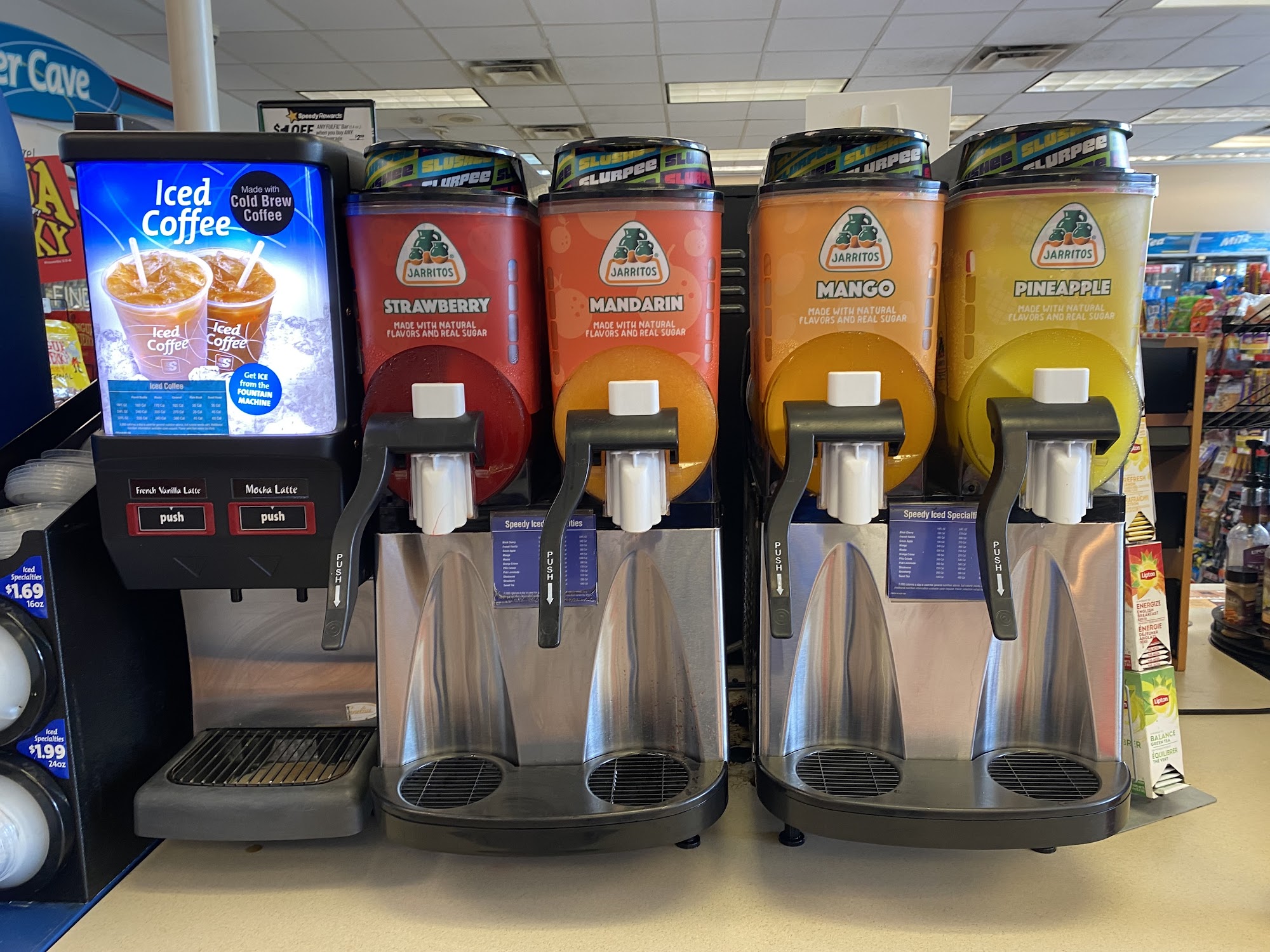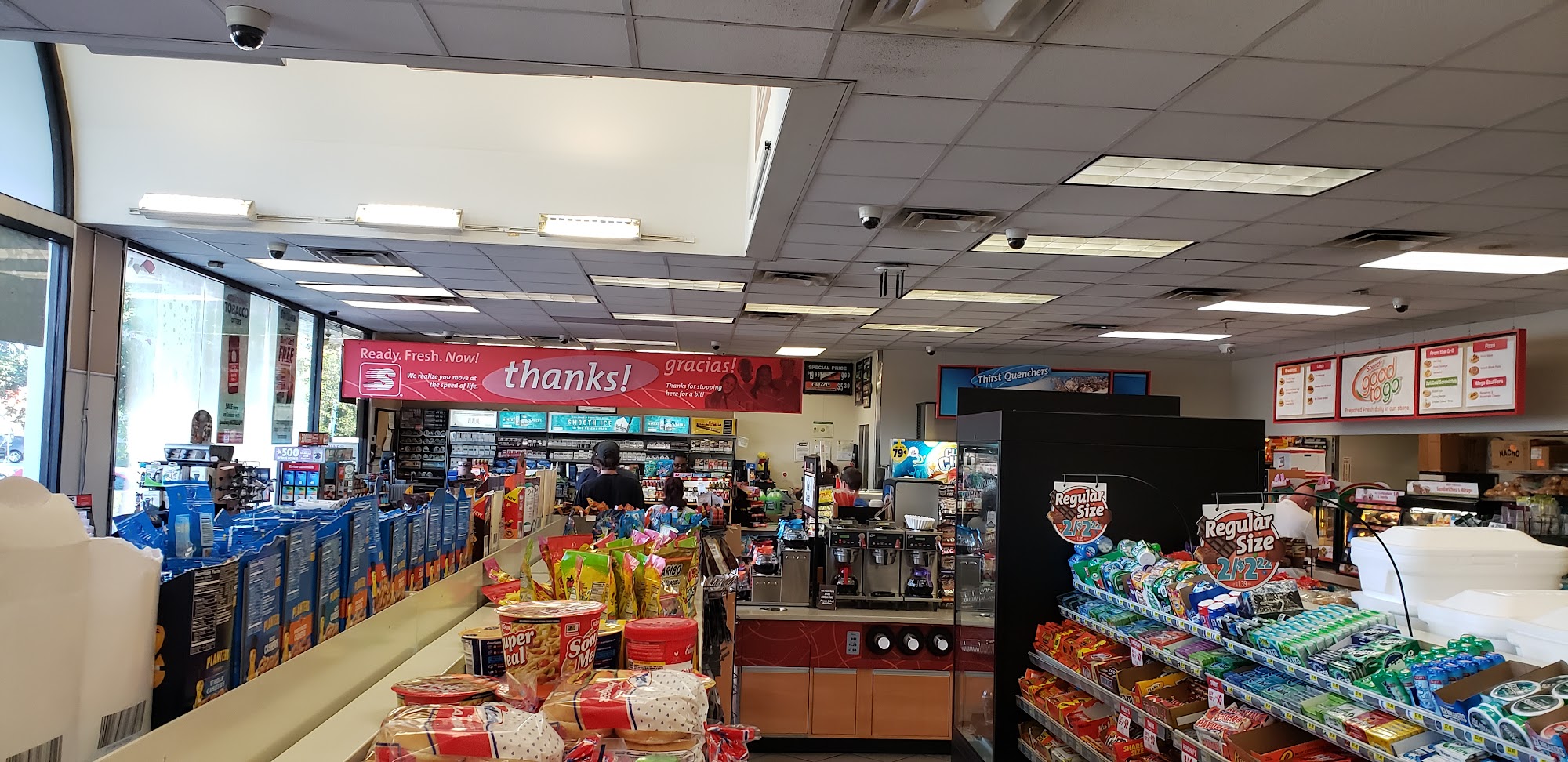 Busy location, quick in and out, nice selection of beverages and snacks. Friendly service, competitive pricing.