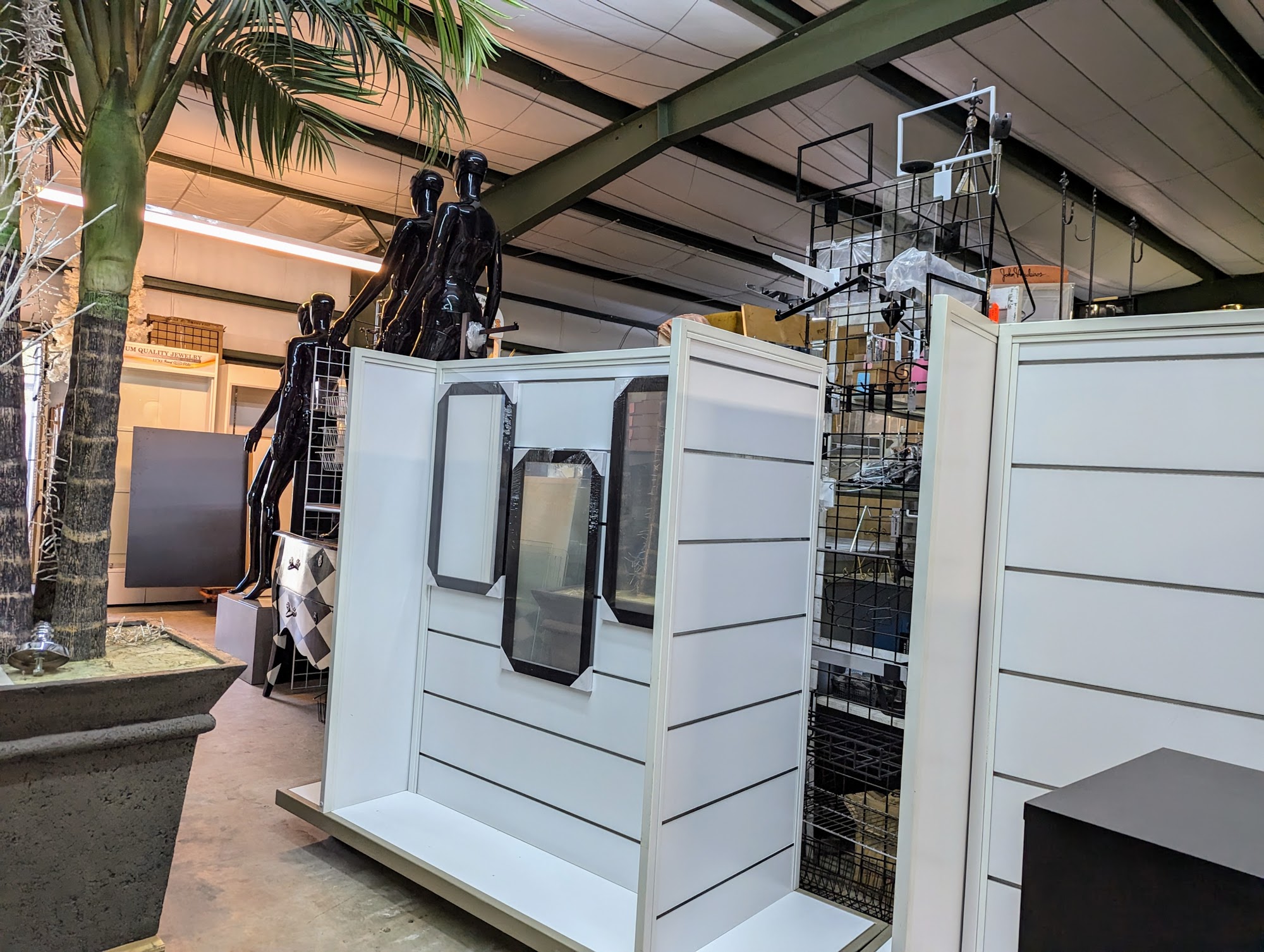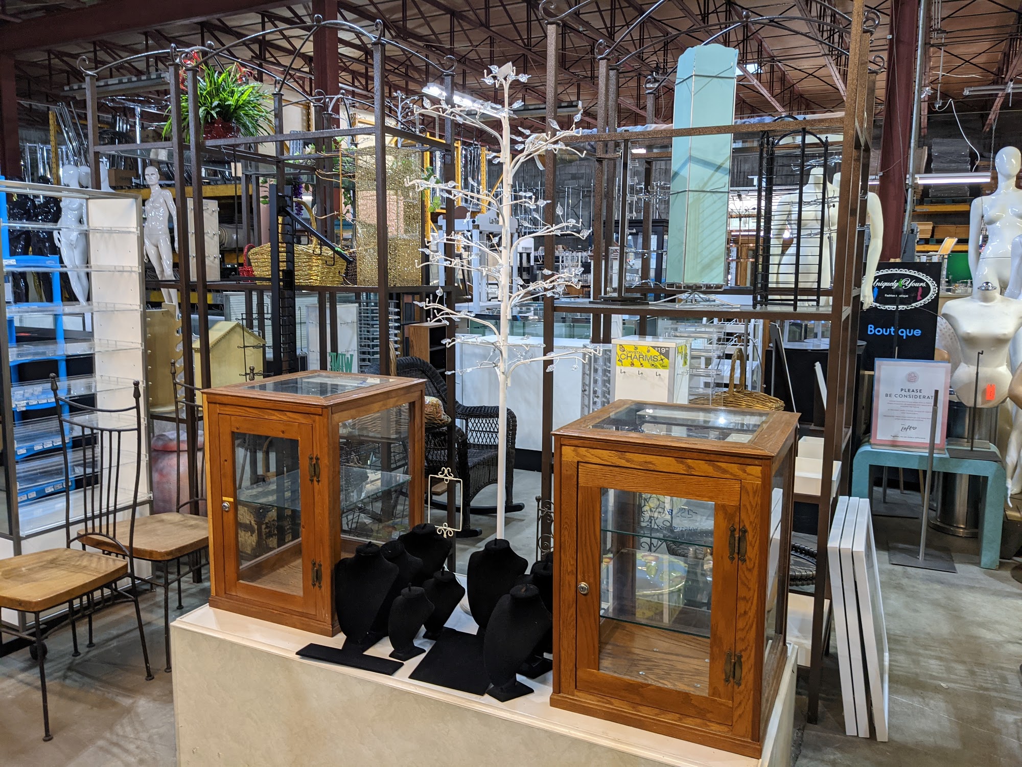 Retail displays, garment racks, slat wall panels, slatwall displays and accessories, grid wall panels, gridwall displays and accessories, mannequins and forms, showcases and show case accessories, tags and tagging supplies, jewelry displays, home furniture, odds and ends, antiques, customer made displays