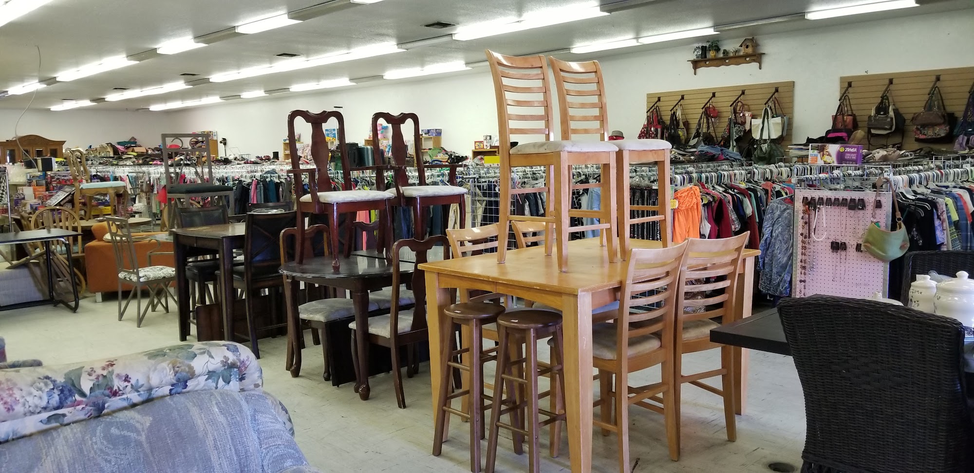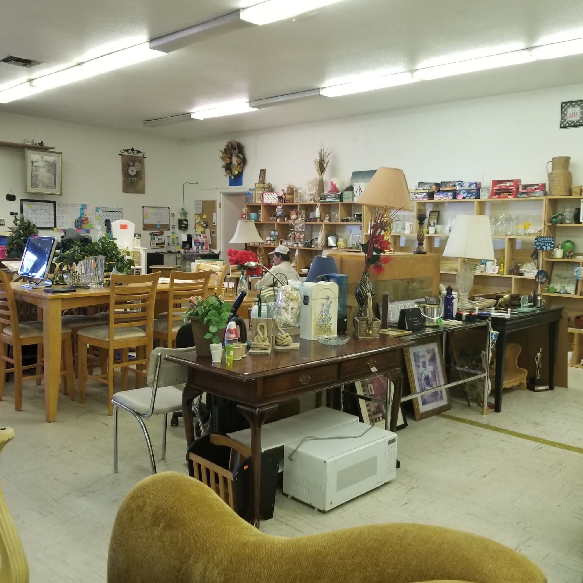 We are a full scale consignment shop. We carry every day household items, furniture, clothing, and appliances. We are thrifty in cost and are big in size with 5000 sq ft of shopping for you to hunt thru.we are a local Uhaul dealer. We offer recycling of clothing, shores, and any other items worn via a recycle shed here on premises.