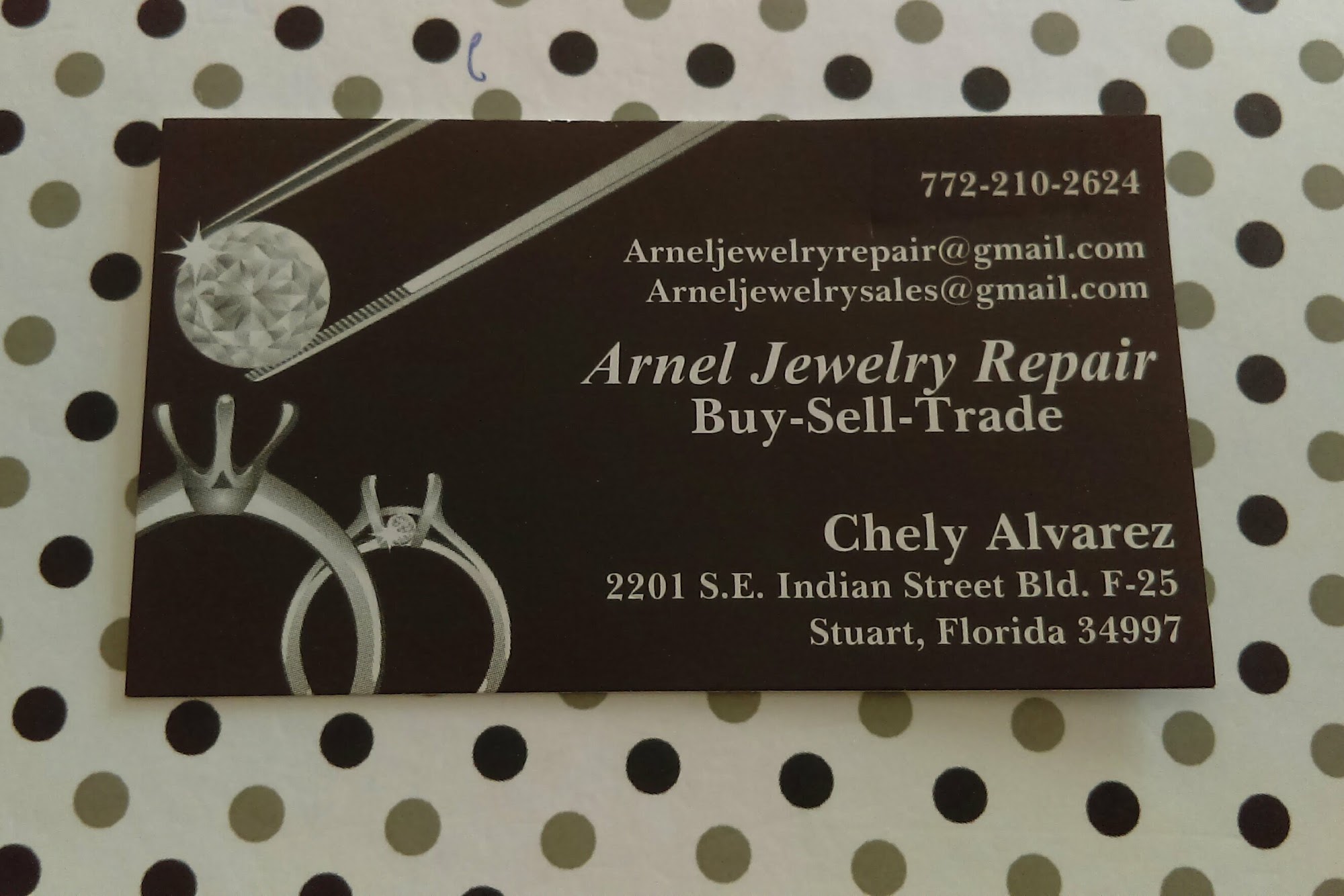 My wedding band broke. I took it to Arnel Jewelers & they gave me a price to fix it. I agreed & they had my ring fixed within an hour & a half!! It looks so good, like it was never broken! I am absolutely satisfied & reccomend this shop to anyone looking for repairs!