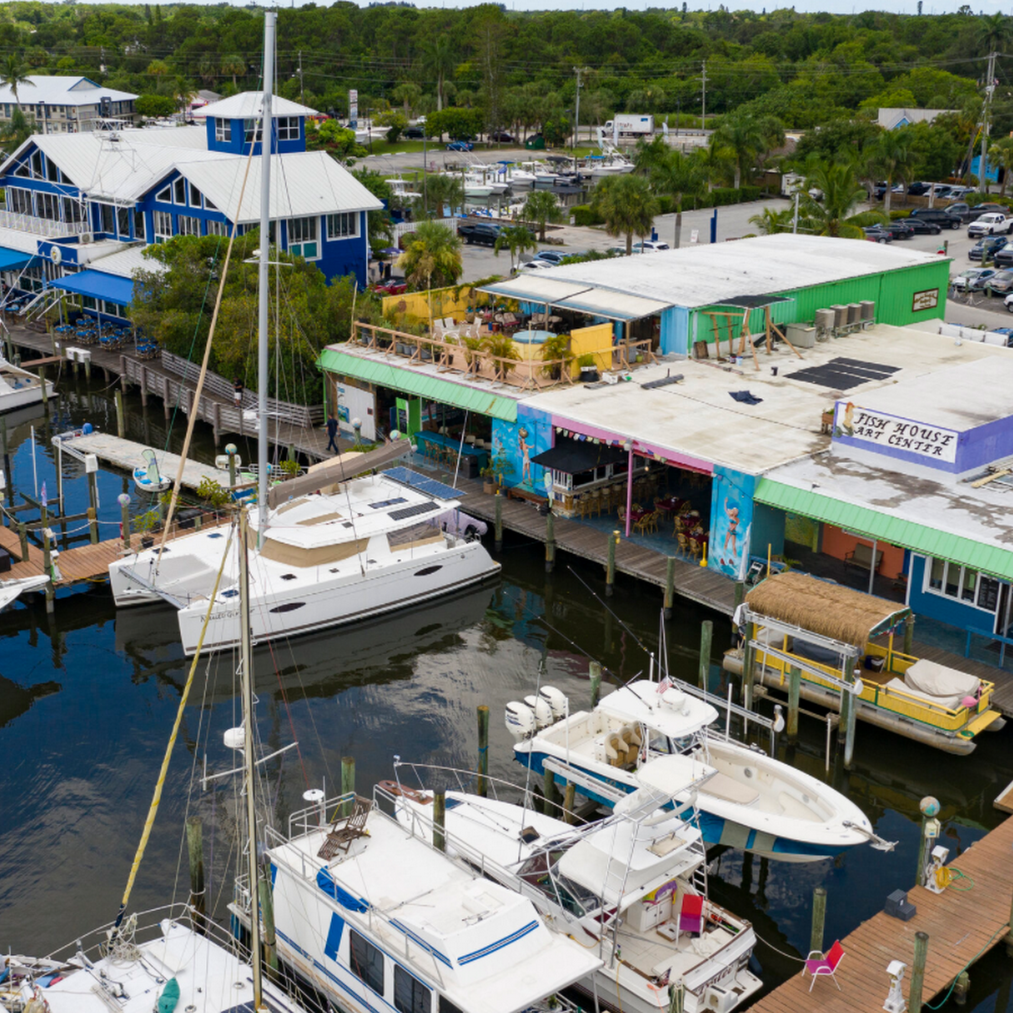 BEST KEPT SECRET IN MARTIN COUNTY! Come by boat, car, or stroll the boardwalk to explore what the best-kept secret has to offer. New and up coming bar/restaurant by the waterfront. (Opening in 2024 date TBD) Waterfront Loft Apartment with optional boat slips, Check the listing via Airbnb. 20 Boat slips rental. Dockmaster can advise on availability. Captain Hook's Ice Cream (Opening in 2024 ) Ariel Yoga Studio (Opening in 2024 Date TBD) Kraken Bikes and Boards offers Electric Bikes. Gift shop for Ladies and men. Come check out the Shop located in the front. We also have Jordan Oteri Jewelry Shop. Stuart Sailing Charters 40' Cat to take you out and explore the area. JetRide Boat Club. All found at The Fish House District and Marina.