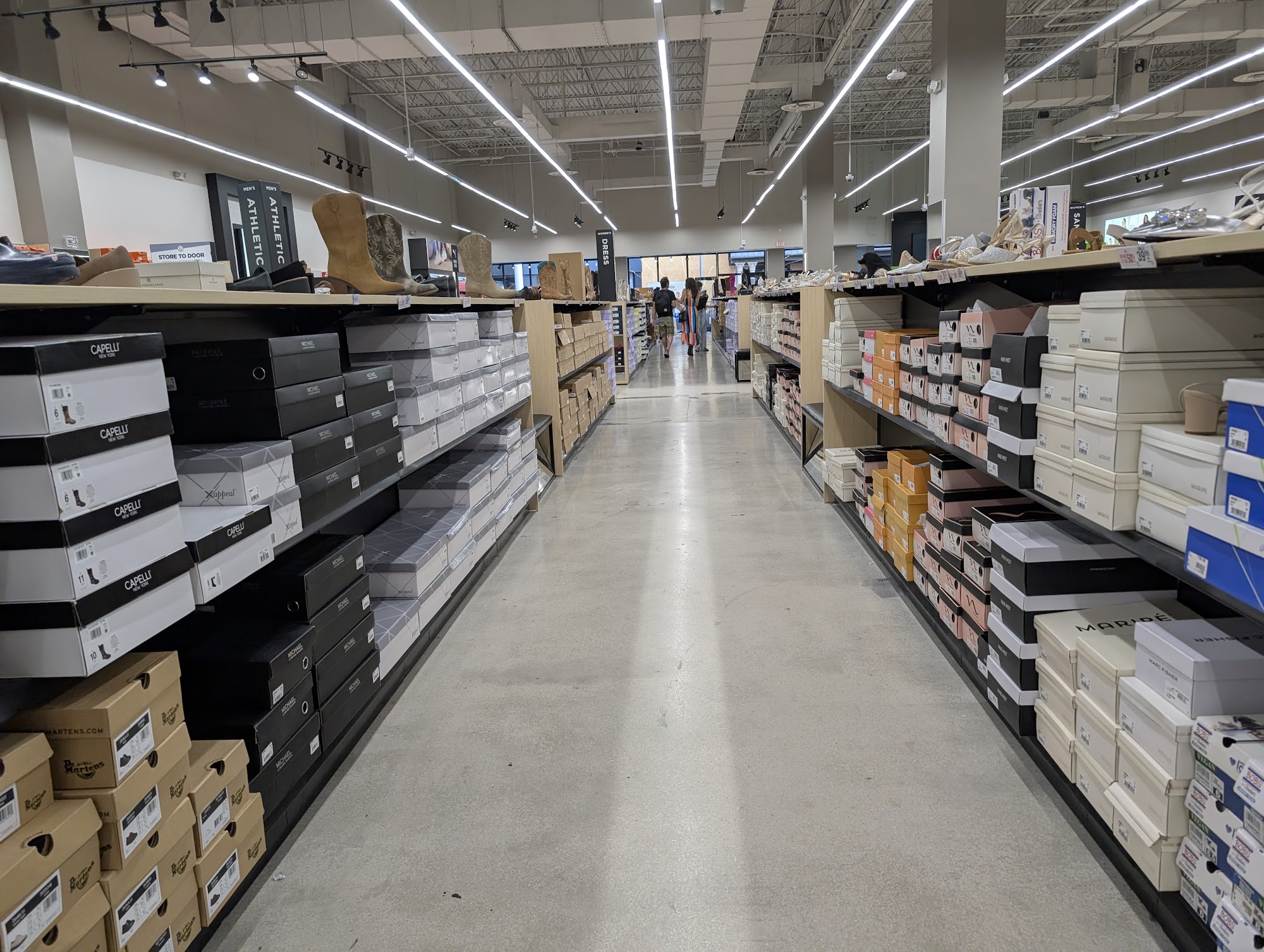 So many shoes. So So many boxes arranged well in dress athletic casual and in the back clearance. The staff were pleasant and leave you to shopBenches to sit and try shoes onWas nice find outside the main mall area