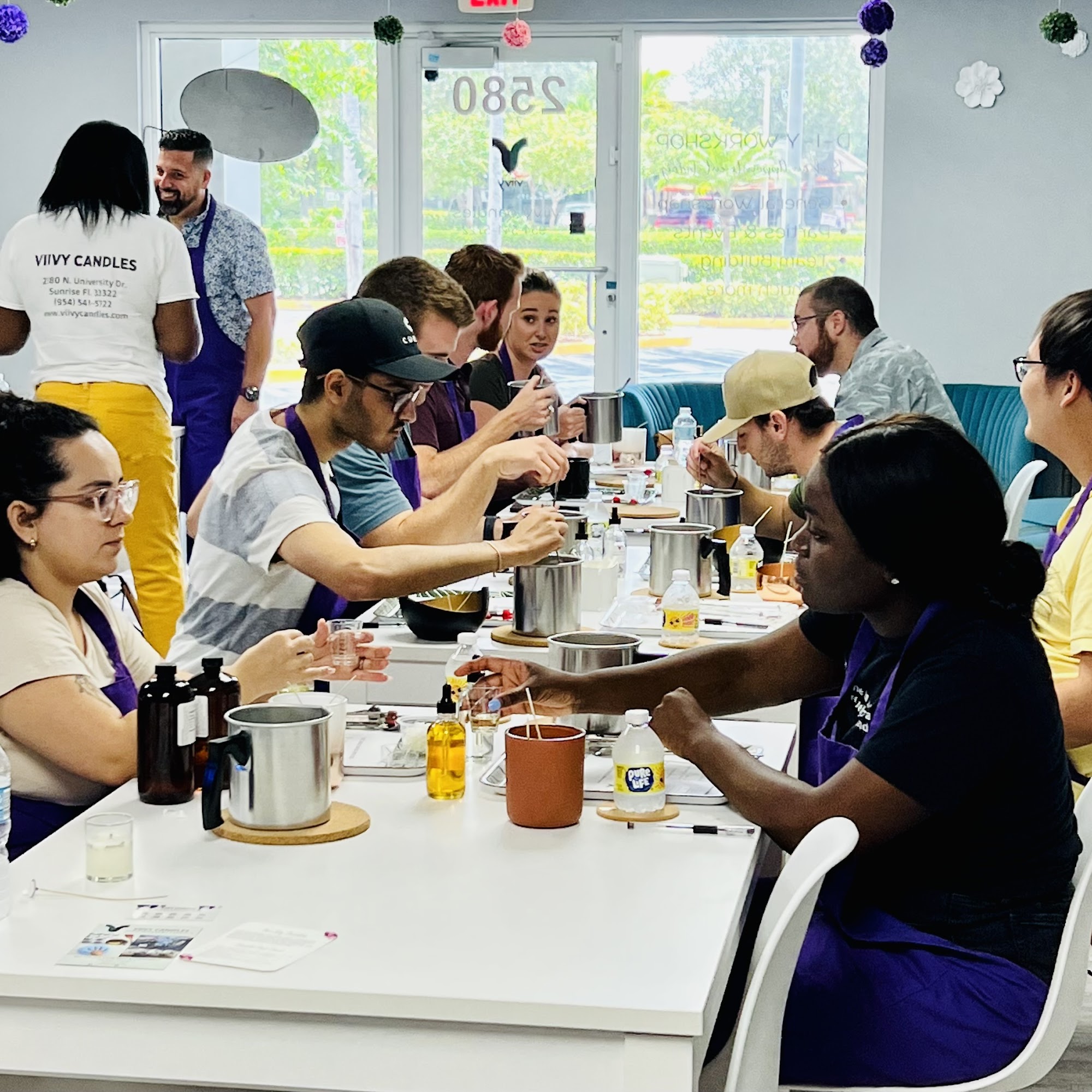 VIIVY Candles is a mobile candle making company that offers a unique and engaging experience for various events. They specialize in creating customized candles and soaps, providing an interactive activity that encourages creativity and fun. The business aims to inspire and motivate through the art of candle making, making each event memorable and special. Clients have praised VIIVY Candles for their professionalism, warmth, and attention to detail. The venue is beautiful, clean, and welcoming, often decorated with candle vessels that add to the cozy atmosphere. The staff, including owner Trisha and team members like Nicole, are noted for being accommodating, friendly, and helpful, ensuring guests feel comfortable and safe during the candle-making process. They provide clear instructions and all necessary supplies, making the experience enjoyable and easy to follow. VIIVY Candles is popular for a variety of occasions such as bridal showers, girls’ nights, Mother’s Day brunches, team building, and end-of-the-year luncheons. Guests leave with a useful keepsake, their own handmade candles, and positive memories. The company’s use of soy wax and delicious scents enhances the experience, and the staff’s professionalism and enthusiasm keep everyone engaged. Overall, VIIVY Candles delivers a fun, memorable, and well-organized candle-making experience suitable for any celebration or gathering.