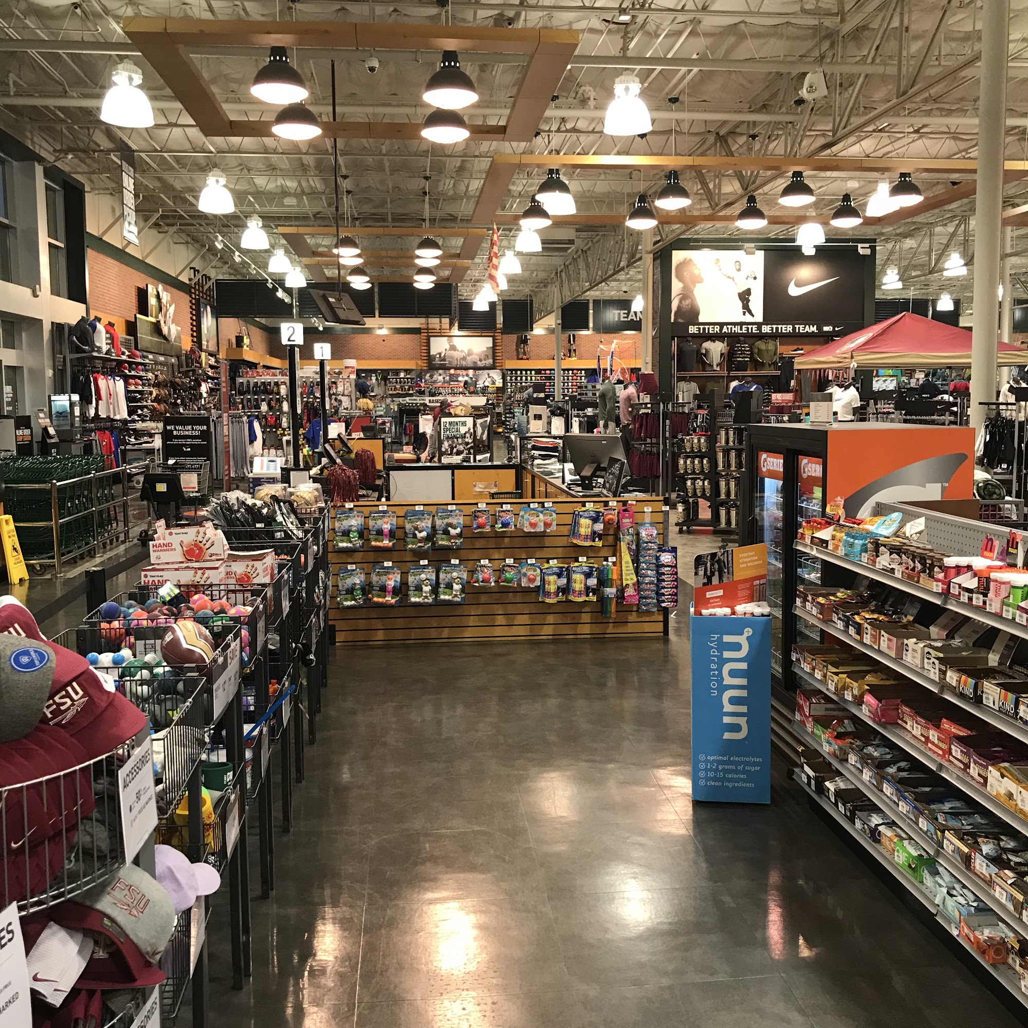 DICK'S Sporting Goods in TALLAHASSEE is a one-stop shop for all your sports, exercise, officially licensed, and outdoor equipment needs. The knowledgeable staff and service teams are ready to help you find the perfect gear, from baseball gloves to golf clubs, and set up your fishing equipment. The store carries a wide assortment of top-brand footwear, workout clothes, sports equipment, camping gear, bikes, kayaks, and exercise equipment. Customers can find the lowest prices online and pick up their purchases in-store. The store's golf pro shop and helpful employees, like Ed and Ricky, provide excellent customer service and expertise, ensuring a satisfying shopping experience.