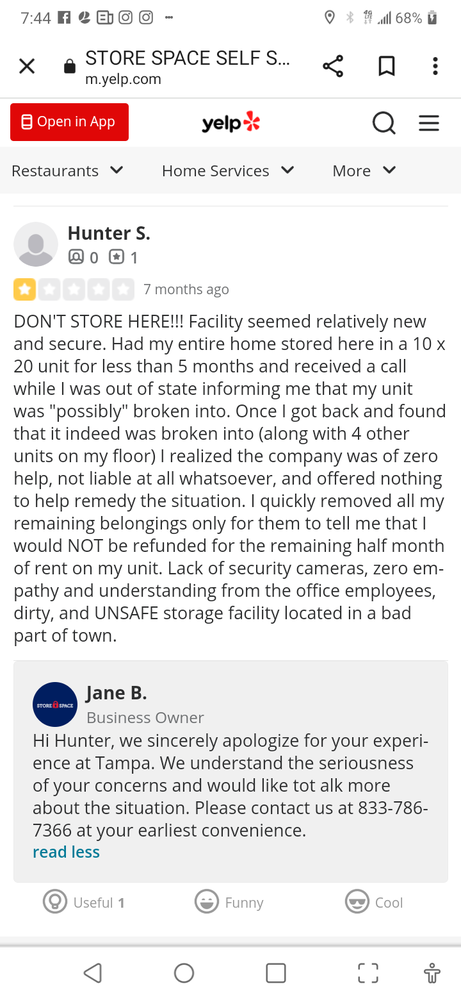 Érica was efficient and patient.I reserved my unit online and had minor issues. I was able to come into the office, she assisted and fixed everything. She Made it super easy and did it with a smile. Units are affordable and reasonable prices.