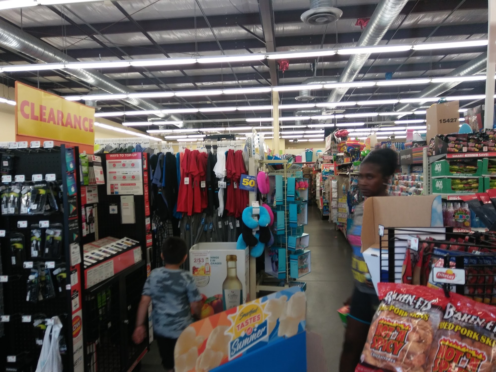 Empty shelves. But stuff everywhere. The way the other workers spoke loud you couldn't hear the cashier say how much or insert card now
