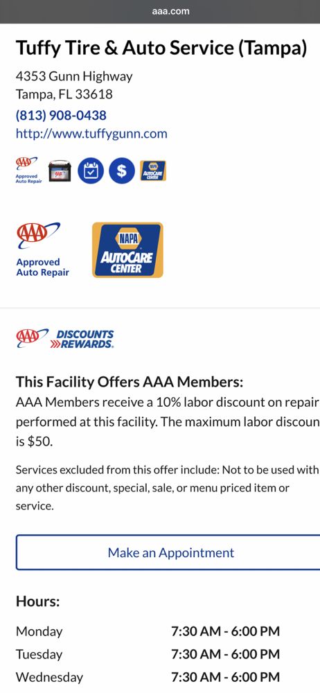 Tuffy Tire & Auto Service Center on Gunn Hwy is highly recommended by long-term customers, with some using their services for over 10 or 12 years. Reviews describe the shop as honest, friendly, and helpful, noting they do only what is needed without trying to make customers spend extra money. The staff and service work consistently exceed expectations. The mechanics are great and knowledgeable, with a management that believes in charging a fair price for everyone. They successfully handle challenging repairs and make every effort to fix vehicles at a decent cost. Customers report driving across town to use this shop and confidently recommend it to others.