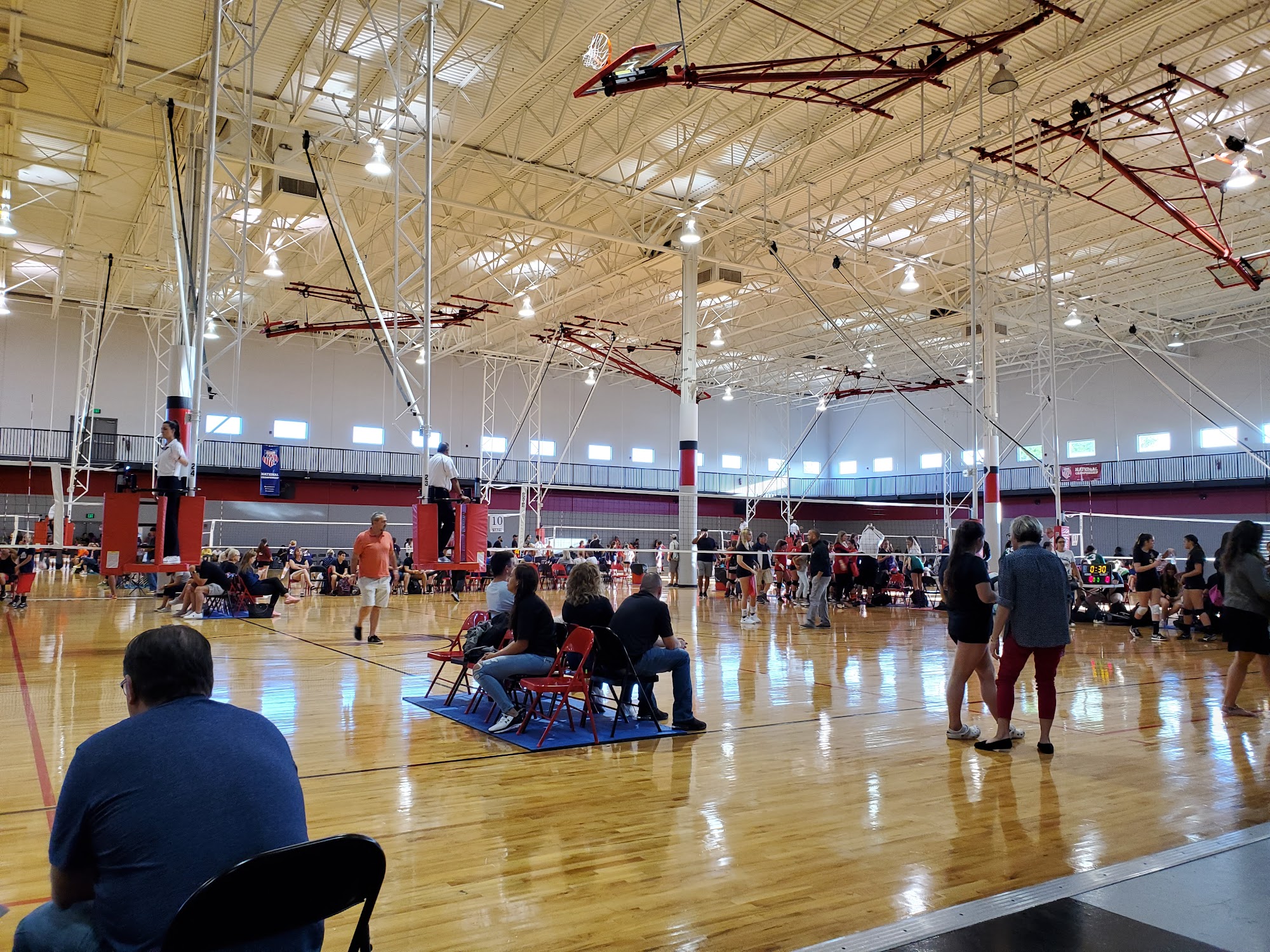 The Big House is a popular sports venue that hosts a variety of tournaments and events, including basketball, volleyball, and baseball. It serves as the home for Sunshine Baseball and Living Lean Fitness, offering facilities for national qualifiers, camps, and clinics. The venue features nine basketball courts and a concession area that provides meals throughout the day. Visitors appreciate the clean restrooms and the spacious environment, which includes ample parking. However, some concerns have been raised about the lack of separation between courts, leading to interruptions during games. The facility has recently upgraded its lighting, enhancing the overall experience. While there is a strict policy regarding outside food and drinks, many find the on-site food options convenient and satisfactory for long days spent at the venue. Overall, The Big House is regarded as a well-maintained facility that provides a positive atmosphere for both players and spectators, making it a favored choice for competitive events and tournaments.