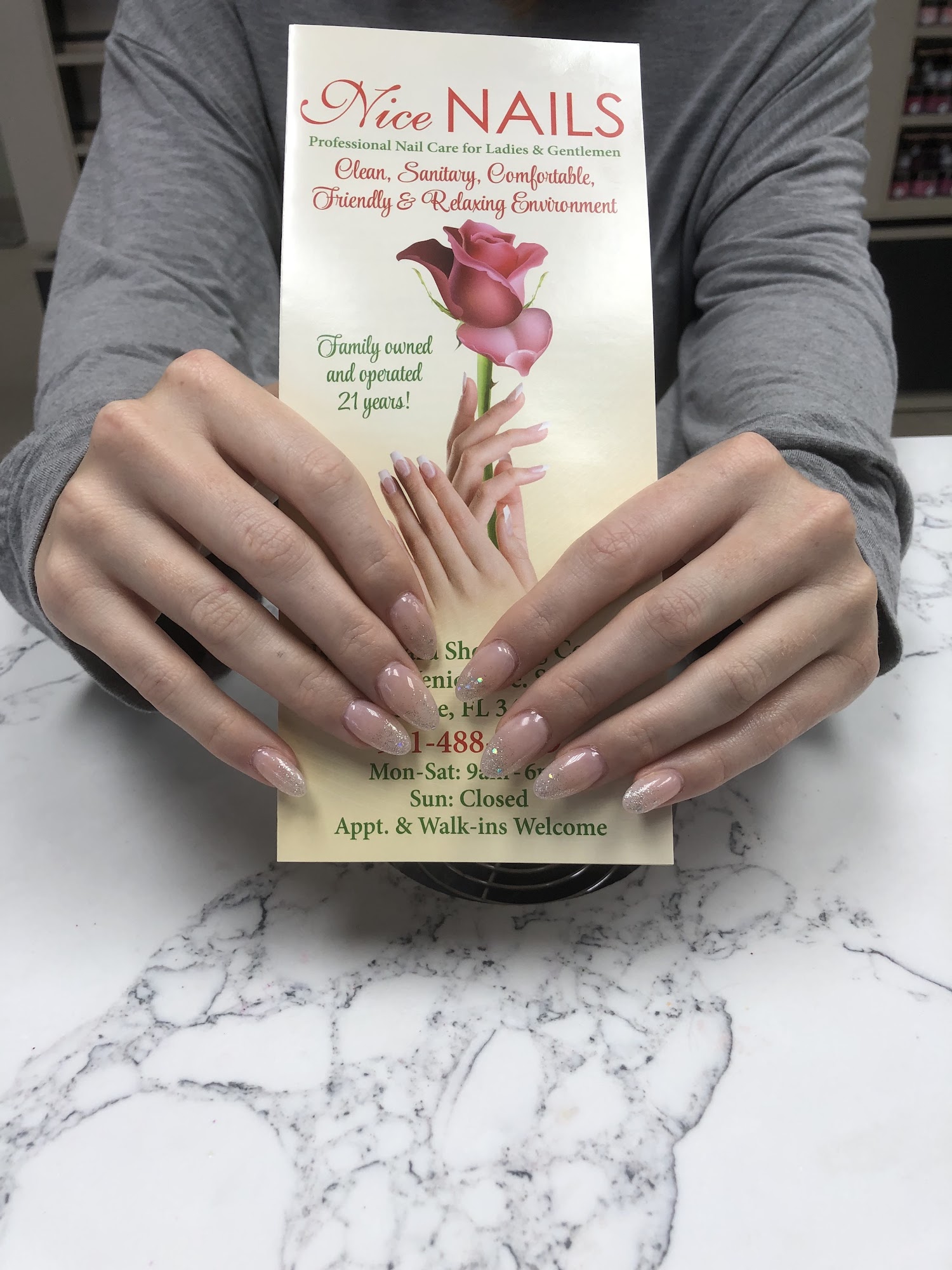 At Nice Nails, sanitation ventilation, and cleanliness are high priority. The staff is well-trained nail technicians with many years of experience from serving a variety of clients of many different states. Nice Nails satisfies both men and women by providing full-service nail care from problem nails, short nails, and nail biters to beautiful natural looking nails. We specialize in luxury spa manicures & pedicures, acrylic, gel, waxing, etc. So come in relax, and let us show you and your guest a relaxing and soothing experience.