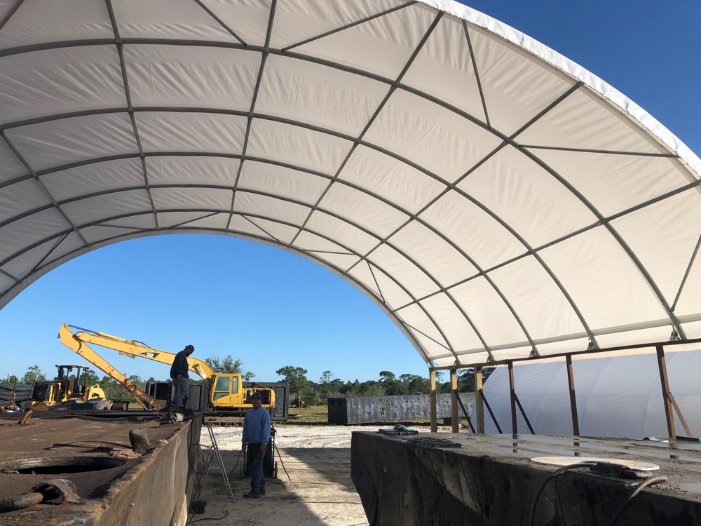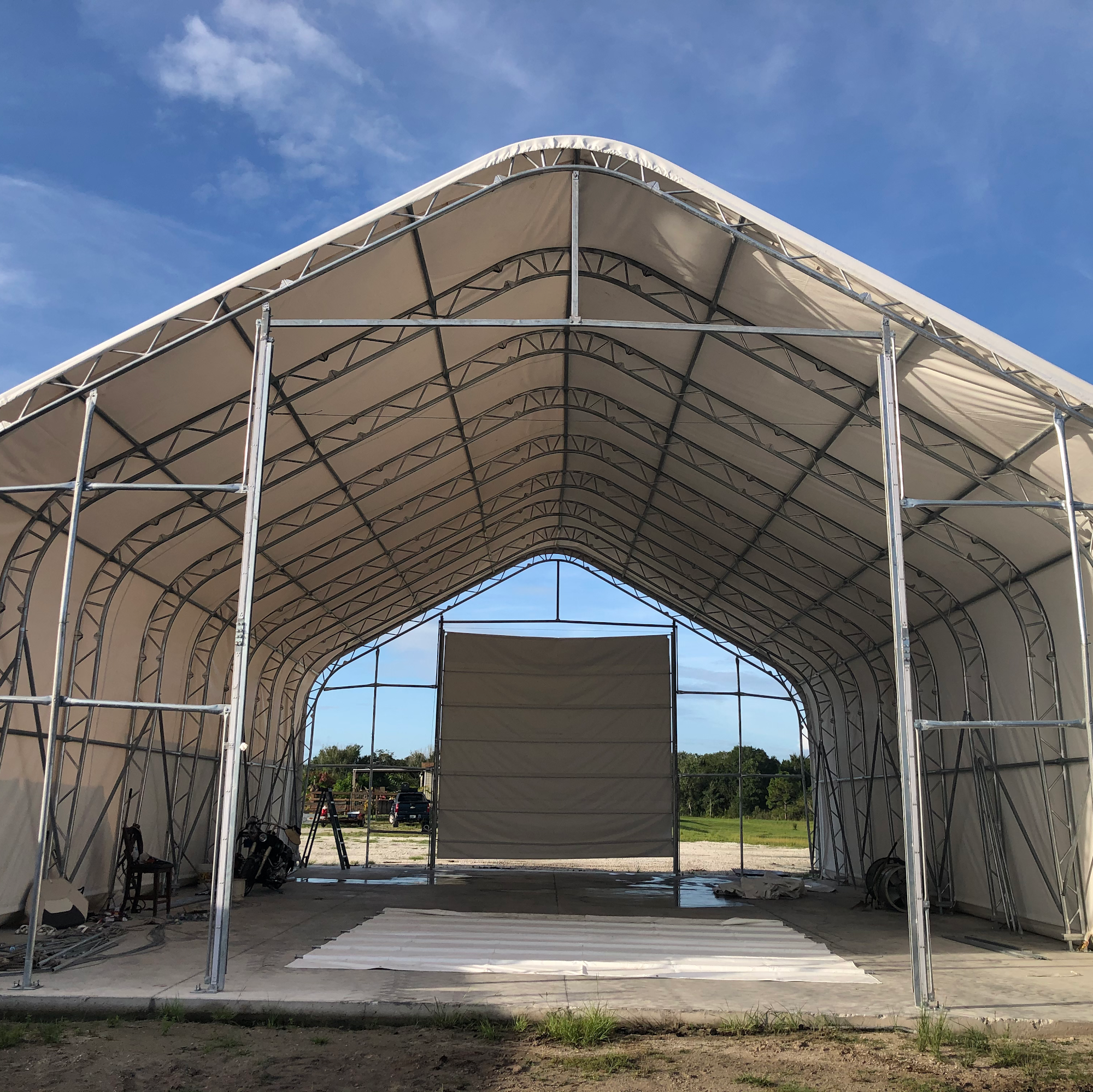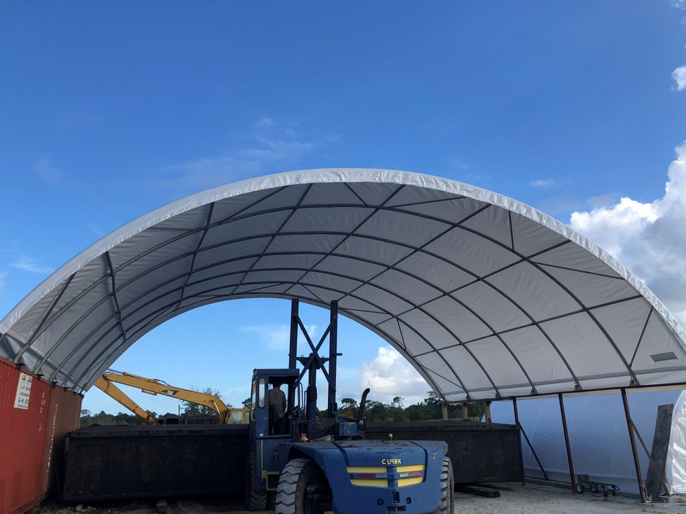 Fabric structures supplier for industrial agricultural manufacturing bulk material storage. Portable garages, storage shelters, carports, and canopies