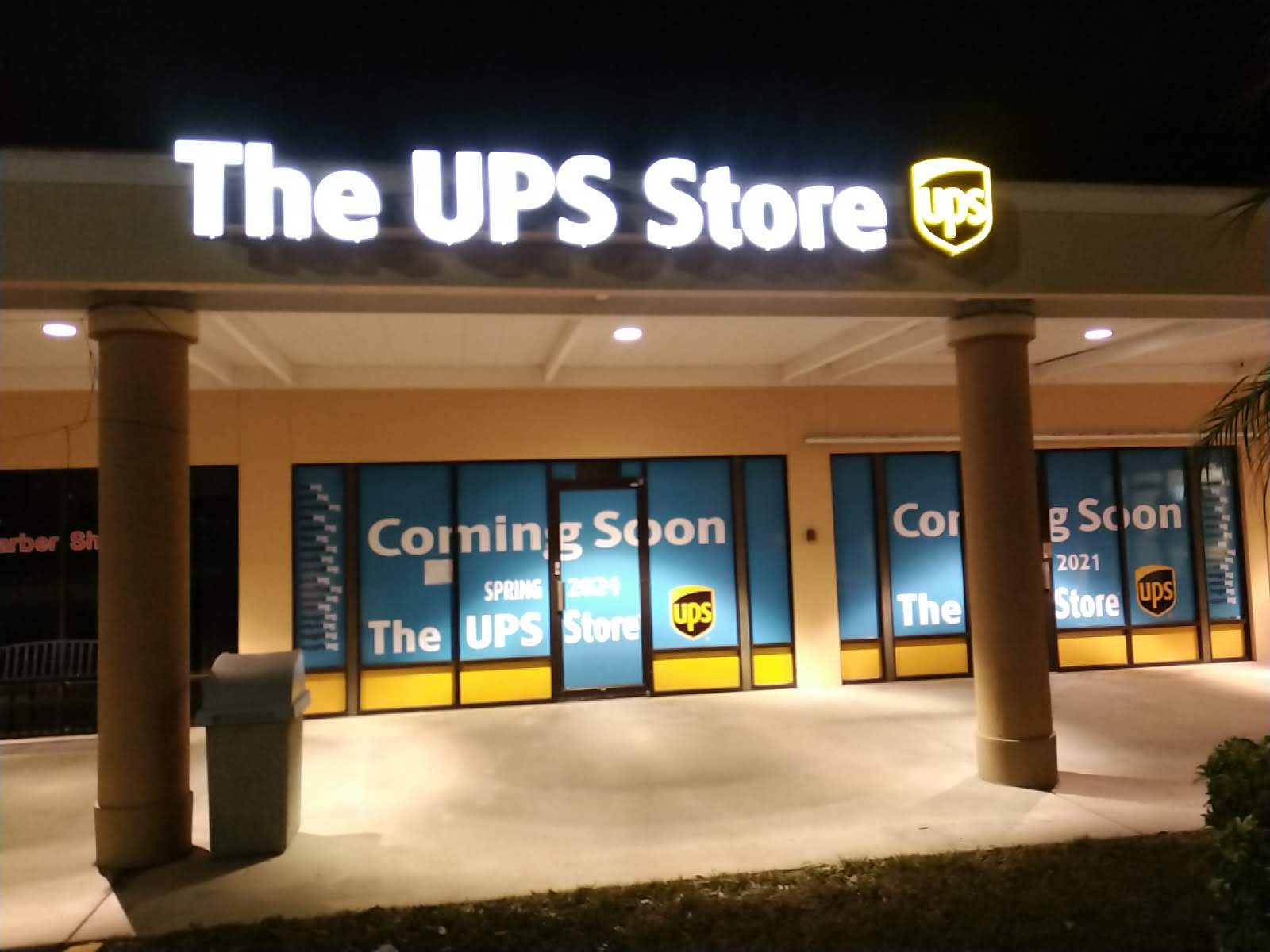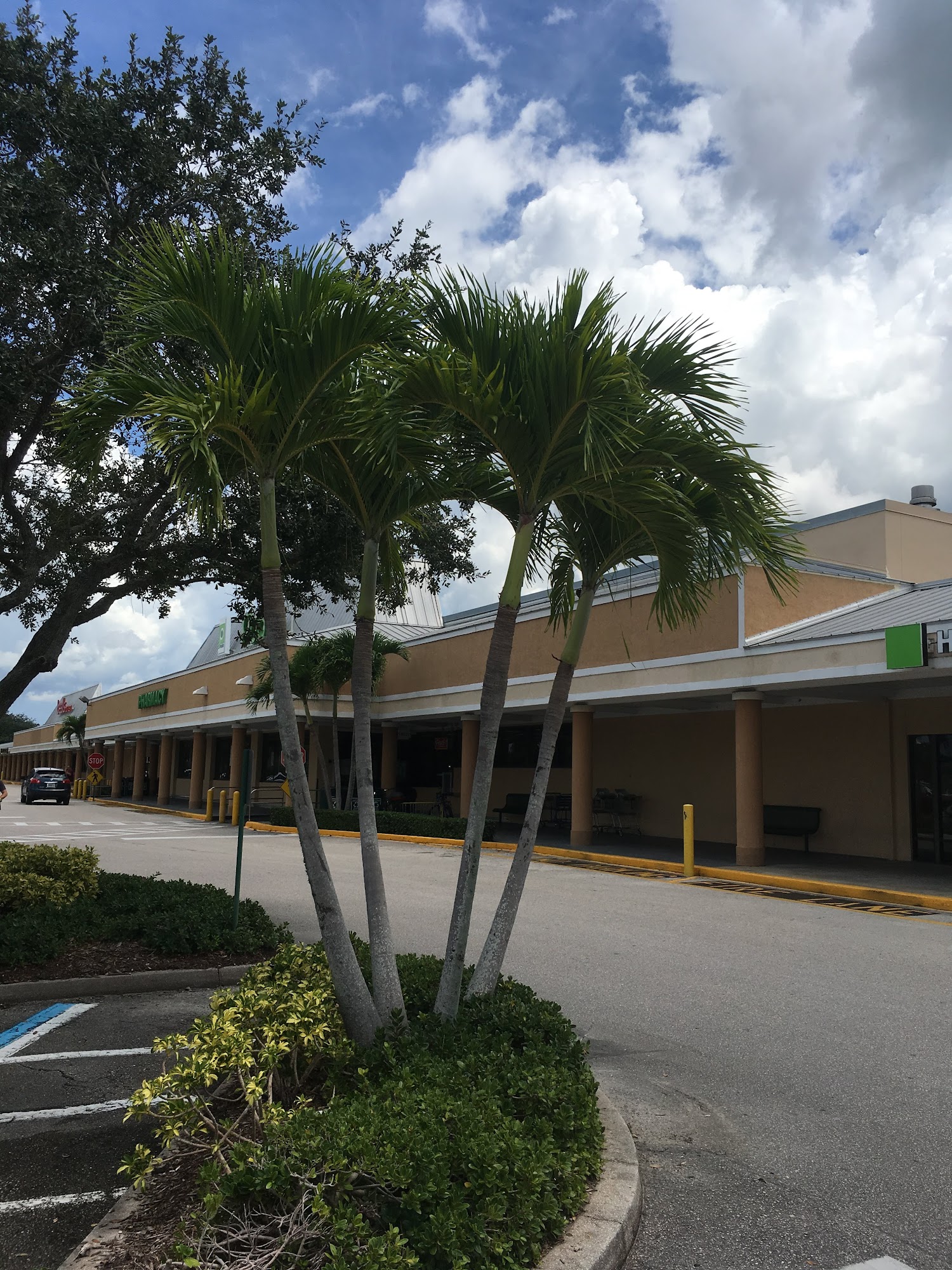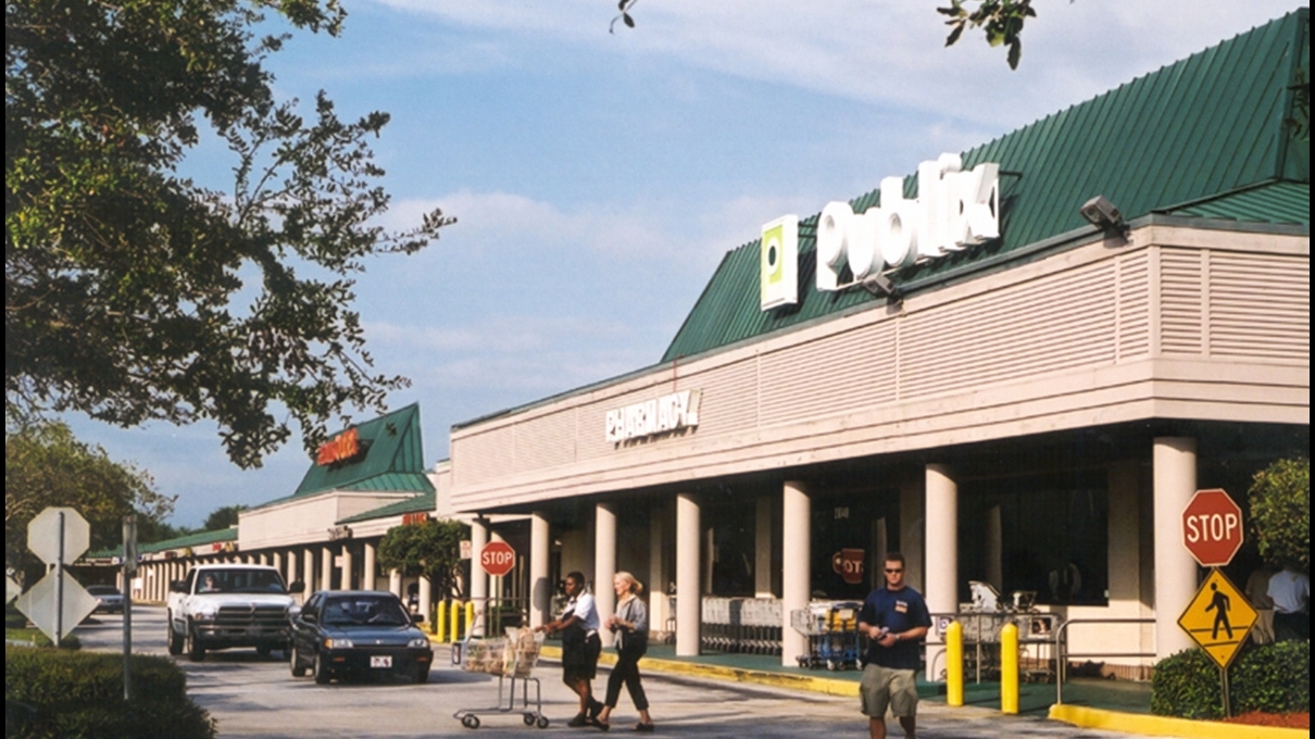 Nice shopping plaza with a restaurant UPS Bealls outlet in a Publix plus more