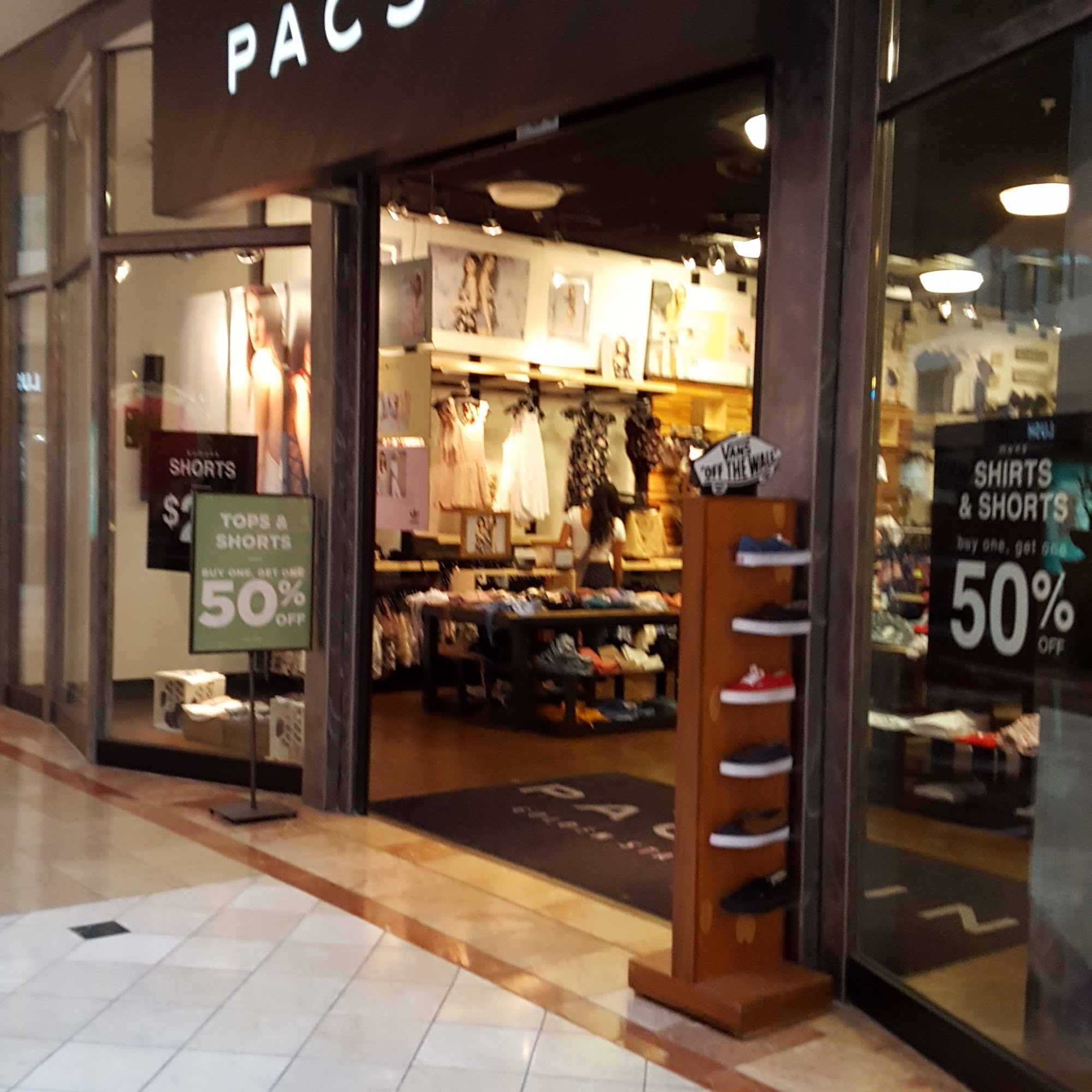 Pacsun at the Wellington Mall is a modish store that caters to a variety of merchandise from graphic t-shirts, jeans, cute baby shirts, shoes etc. The manager, Iam, and staff were kind and helpful during my shopping spree. Prices are affordable and the apparel caters to all ages. Highly recommended!