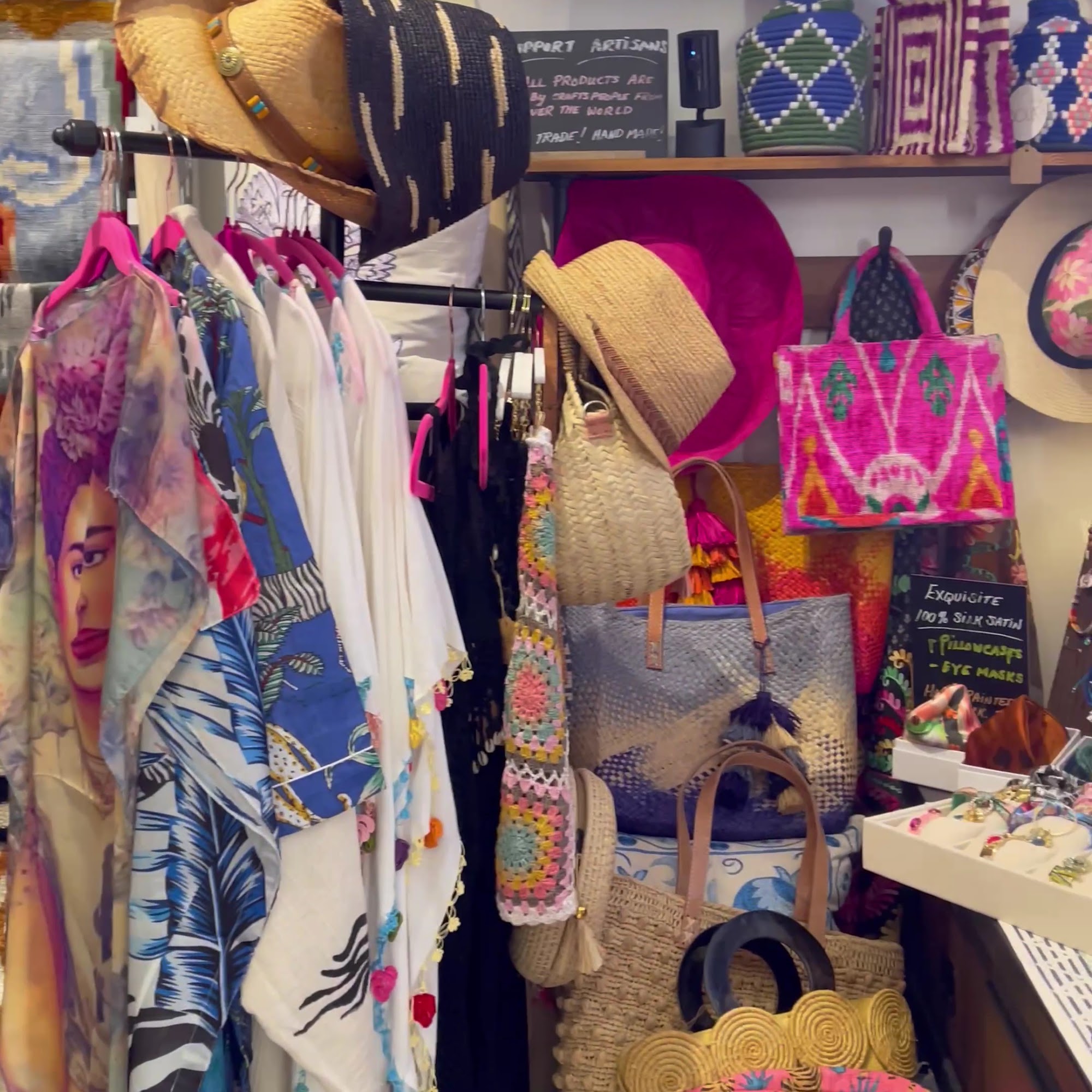 Material World is a global shopping boutique that offers a curated collection of handmade crafts, home decor, jewelry, loungewear, and accessories. The emphasis is on fair trade and fair wages for the artisans, as well as preserving and promoting traditional methods of craft making and production. The products are unique and one-of-a-kind, with a focus on bold color and global design. The owner, Rachelle, has over 30 years of experience in the design industry and a passion for her store, which is reflected in the beautiful and amazing selection of products available.