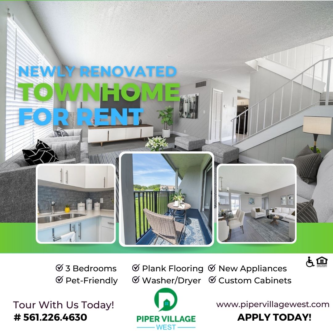 Welcome to Piper Village West, your dream community where comfort, leisure, and entertainment are designed with your lifestyle in mind. With a prime location and top-tier amenities, our pet-friendly apartments for rent in West Palm Beach, FL, have everything you need to feel right at home. Whether you choose a two or three-bedroom apartment, you’ll benefit from a host of convenient features and services that will make your day a breeze. These include waterfront views, washers/dryers, spacious floor plans, and on-site management and maintenance teams ready to assist you. When you’re ready to step out for some relaxation and recreation, come and enjoy our community amenities, including a fitness center, pet park, and pet grooming.