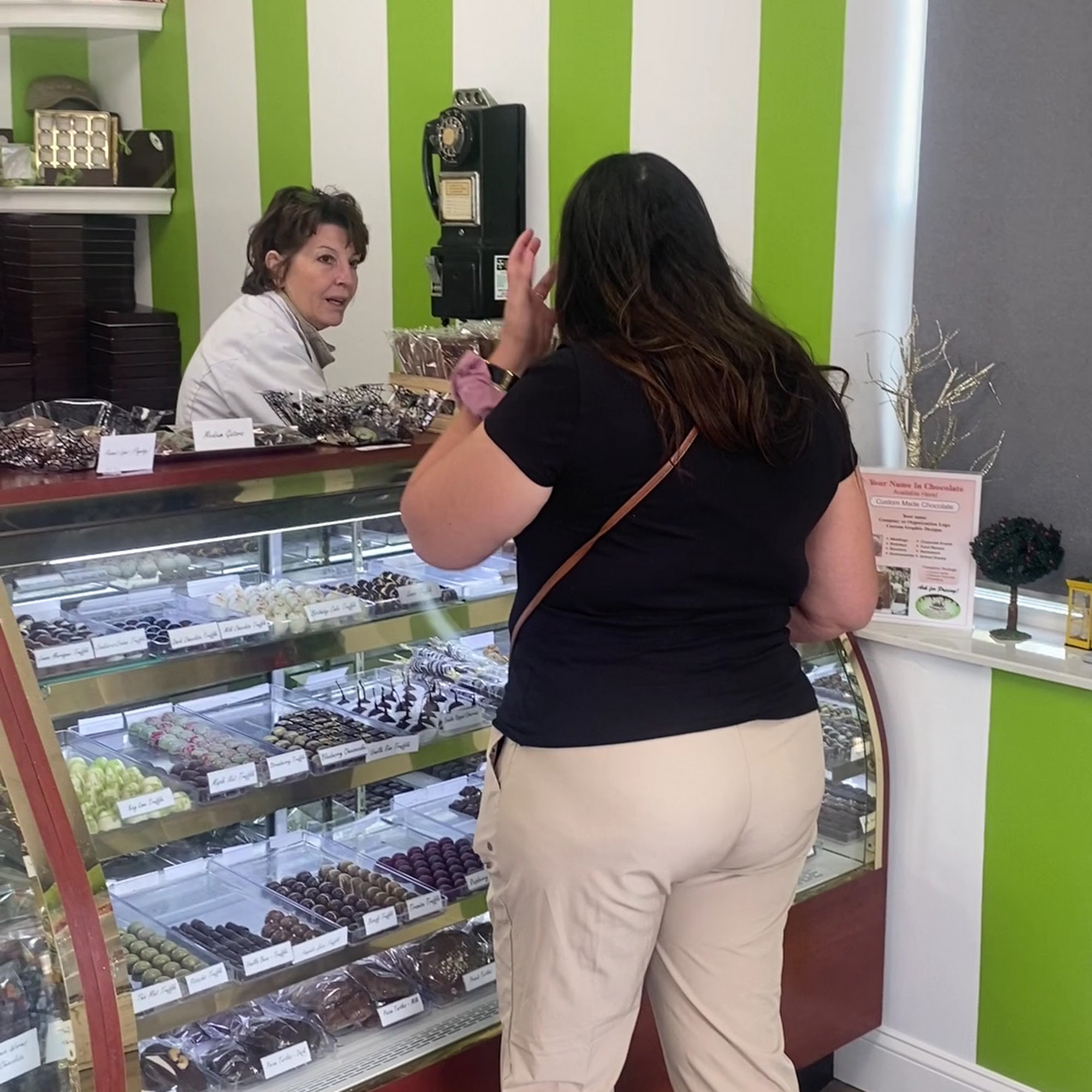 Cute little sore were they hand make their chocolate confections. They even have little spots. You can watch things being made. If you have allergies note they said all of their chocolate contains some gluten. Which did not allow me to try it. My friend said it was amazing as she does not have those allergies.