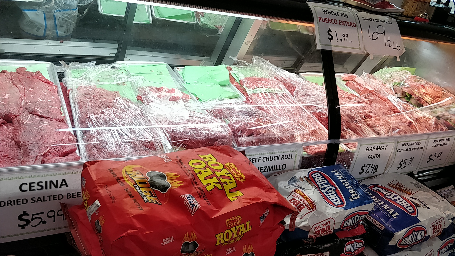 It sells a lot of Spanish food but has a meat market with a butcher fresh meat available