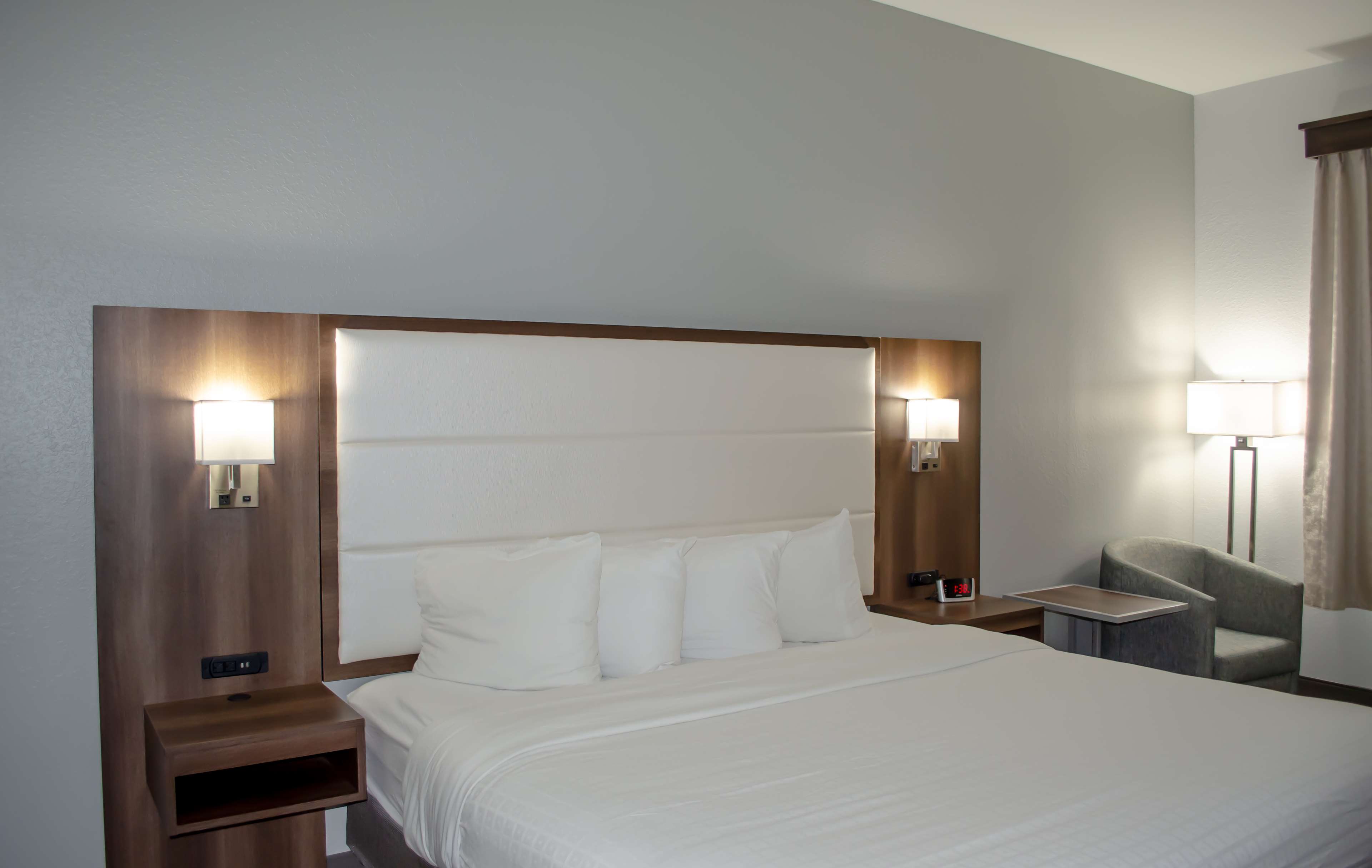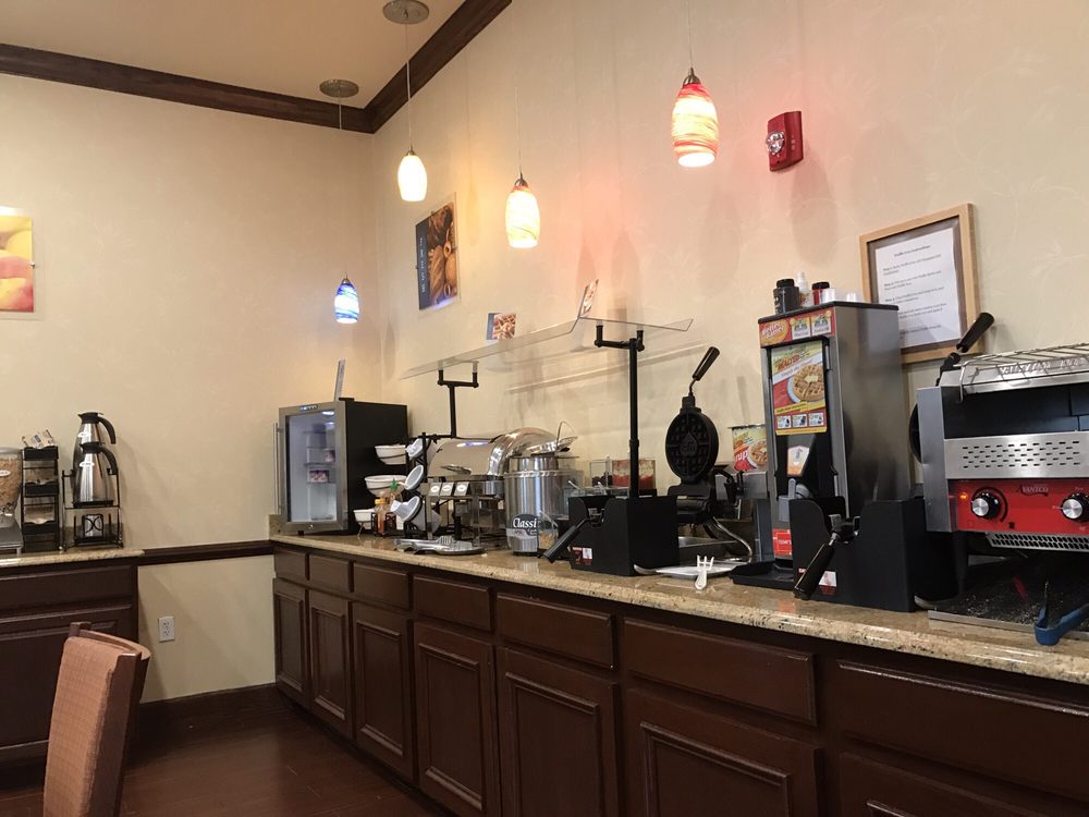 When we arrived we were greeted and assisted quickly. The receptionist was very friendly and helpful. The room was spacious and clean. The bed was super comfy. The location was close to the interstate and 15 minutes from the airport. Breakfast was great too lots of options.