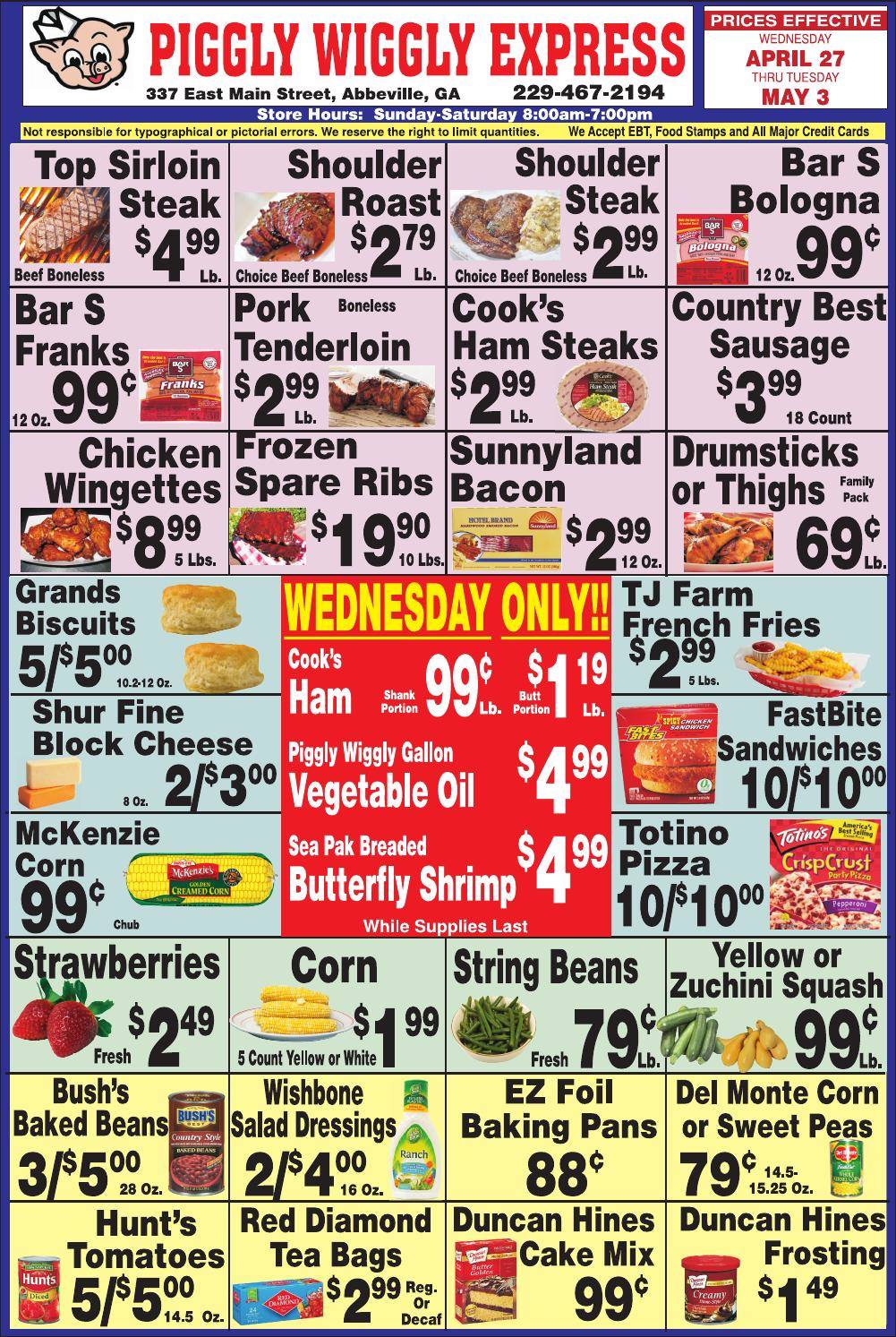 We are Blessed to have our Supermarket, especially when you don't have transportation. Great selection on meats and prices are very reasonable. Thanks Abbeville Supermarket for being here for us.....