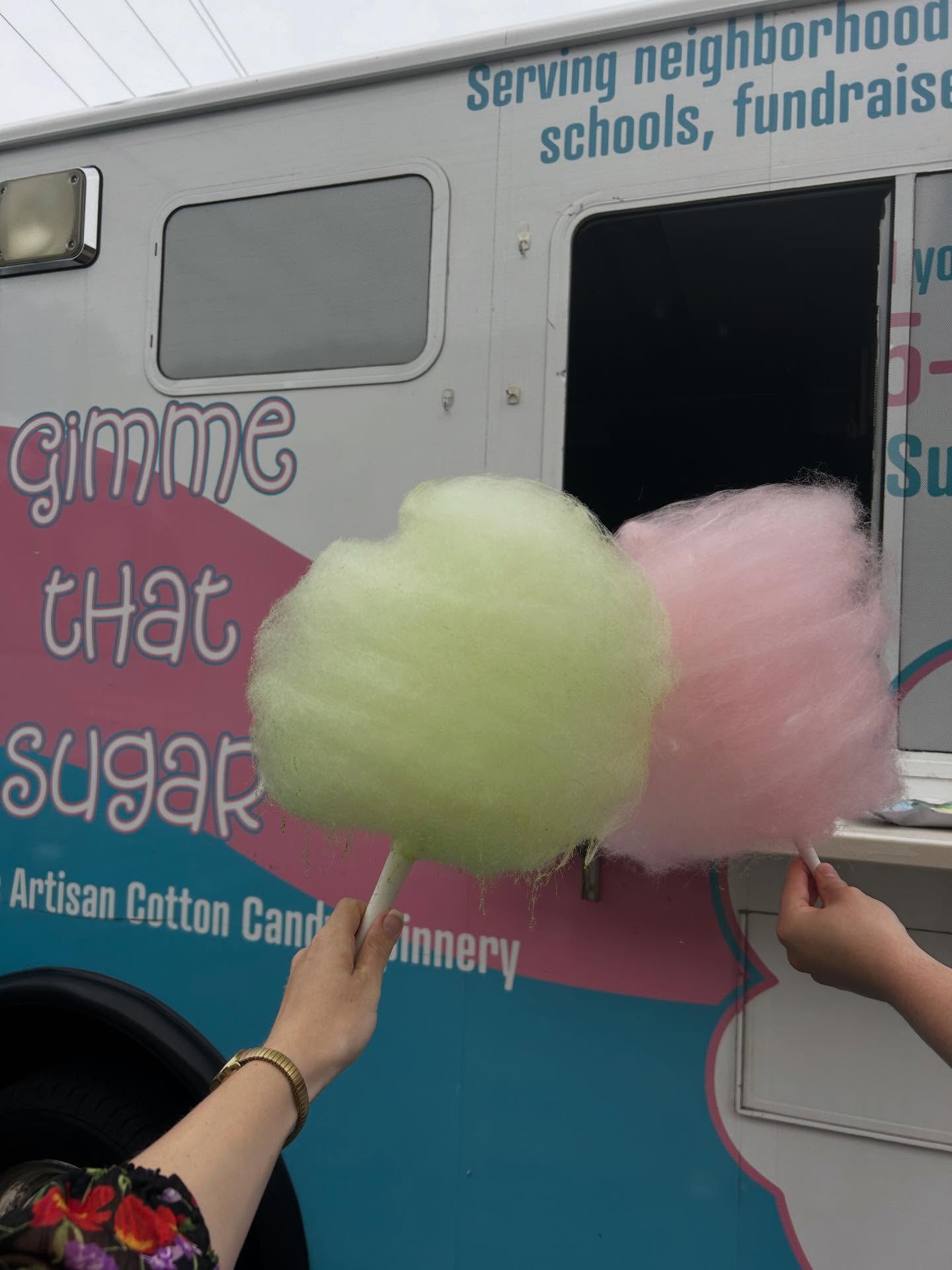Gimme that Sugar is a clean shop with a friendly, smiling staff offering delicious treats. They serve fresh, handspun cotton candy in classic pink and blue and specialty flavors, which can be made into a cotton candy burrito filled with ice cream and toppings. They serve Hershey's Ice Cream in many flavors, plus in-house ube, in a cake cone, waffle cone, waffle bowl, or cup. They also have a variety of shave ice flavors and treats from a local bake shop like cake pops and brownies. The service is excellent, the environment is perfect, and the staff helps make occasions feel special. It is a wonderful local business with a very neat, positive atmosphere.