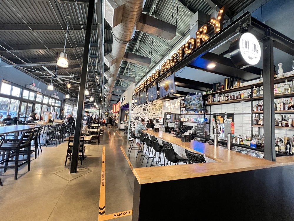 Such a great space to bring the family or date night. There is a food court with a variety of food choices. Outdoor seating can be challenging on a Sunday. Very pro young family vibe so be prepared to see little people running around. Movie theater is an option if you visit. Overall 10/10 experience.