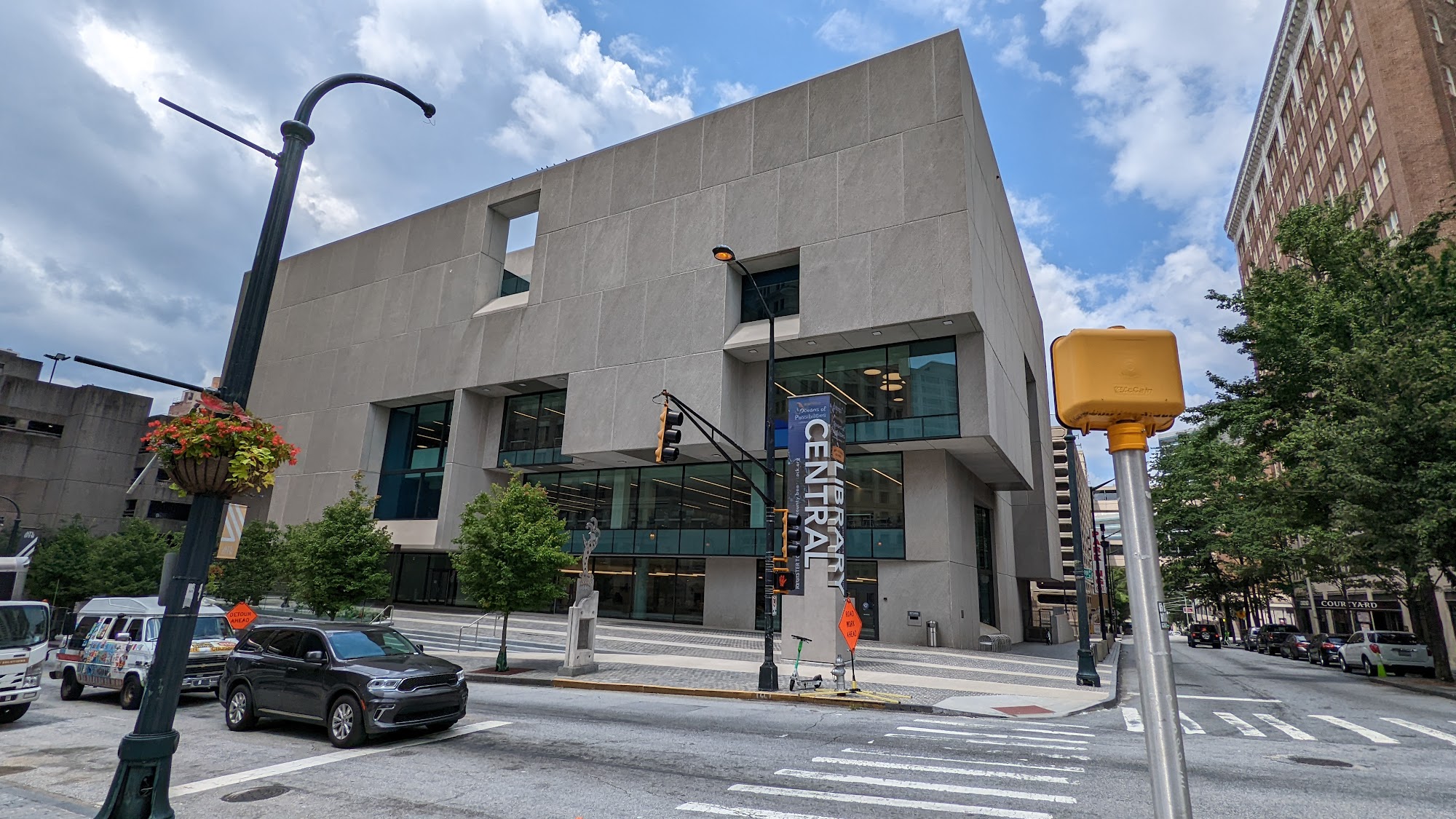 The Central Library/Library System HQ at One Margaret Mitchell Square offers a range of resources and amenities for visitors. The building features a bold Brutalist architectural design that has been recently renovated, creating a bright, modern, and inviting atmosphere. Inside, the library provides ample access to digital resources, technology, and educational programs, as well as specialized creative spaces. Visitors can enjoy the spacious interior, natural light, and flexible meeting areas, which make it a convenient and versatile public space. The location, situated near the Peachtree Center MARTA station, ensures easy accessibility for students, commuters, and tourists alike. While some reviewers note the presence of security measures, such as metal detectors, the library is generally described as a beautiful, well-equipped, and well-maintained facility. The staff is reported to be experienced and the programming to be great. Overall, the Central Library/Library System HQ is a standout public resource that blends historical architecture with modern design and amenities.