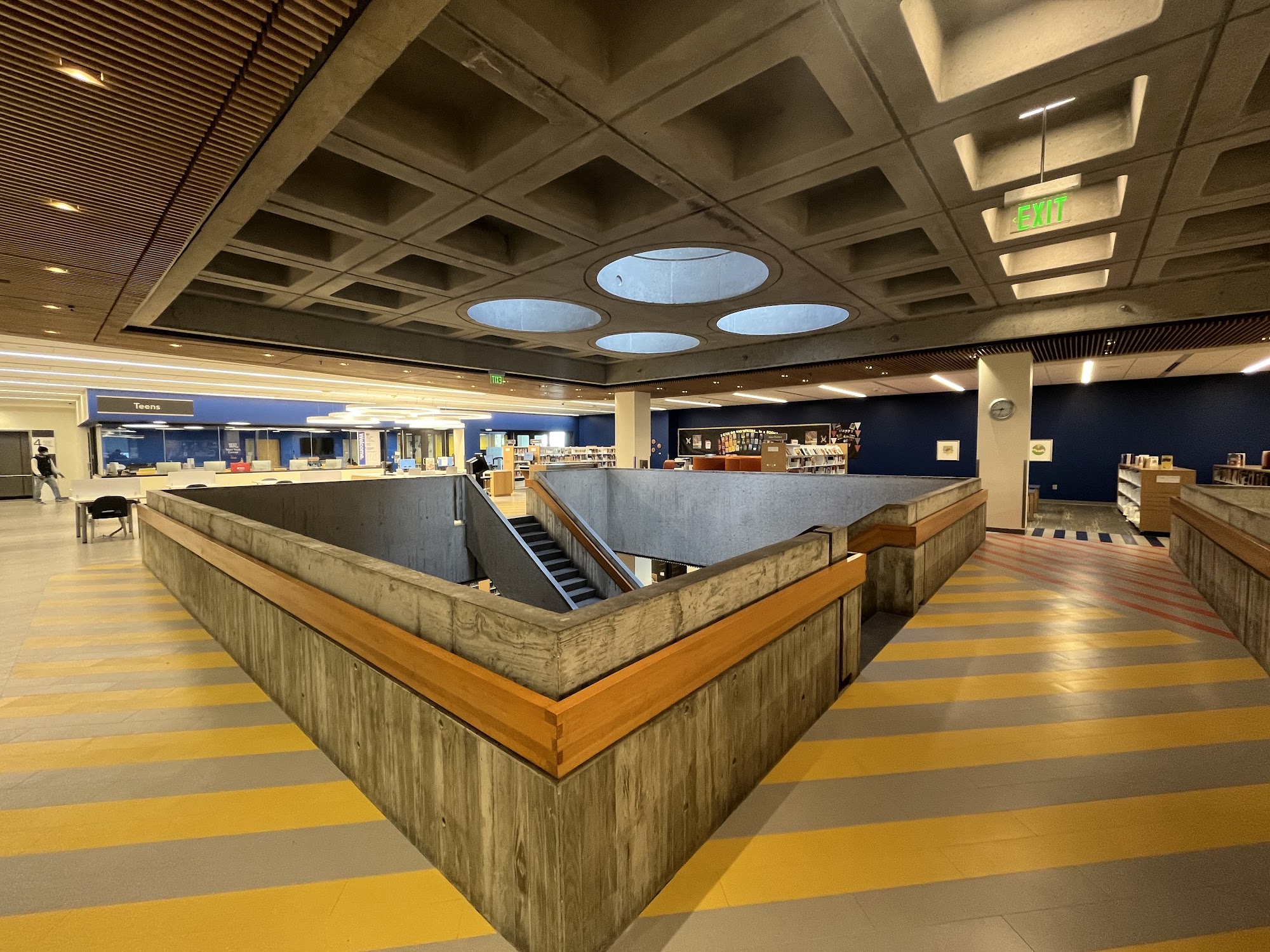 Beautiful main library, gorgeous art work, multifunctional and many features. Renovations made library up to date and modern. Experienced staff and great programming