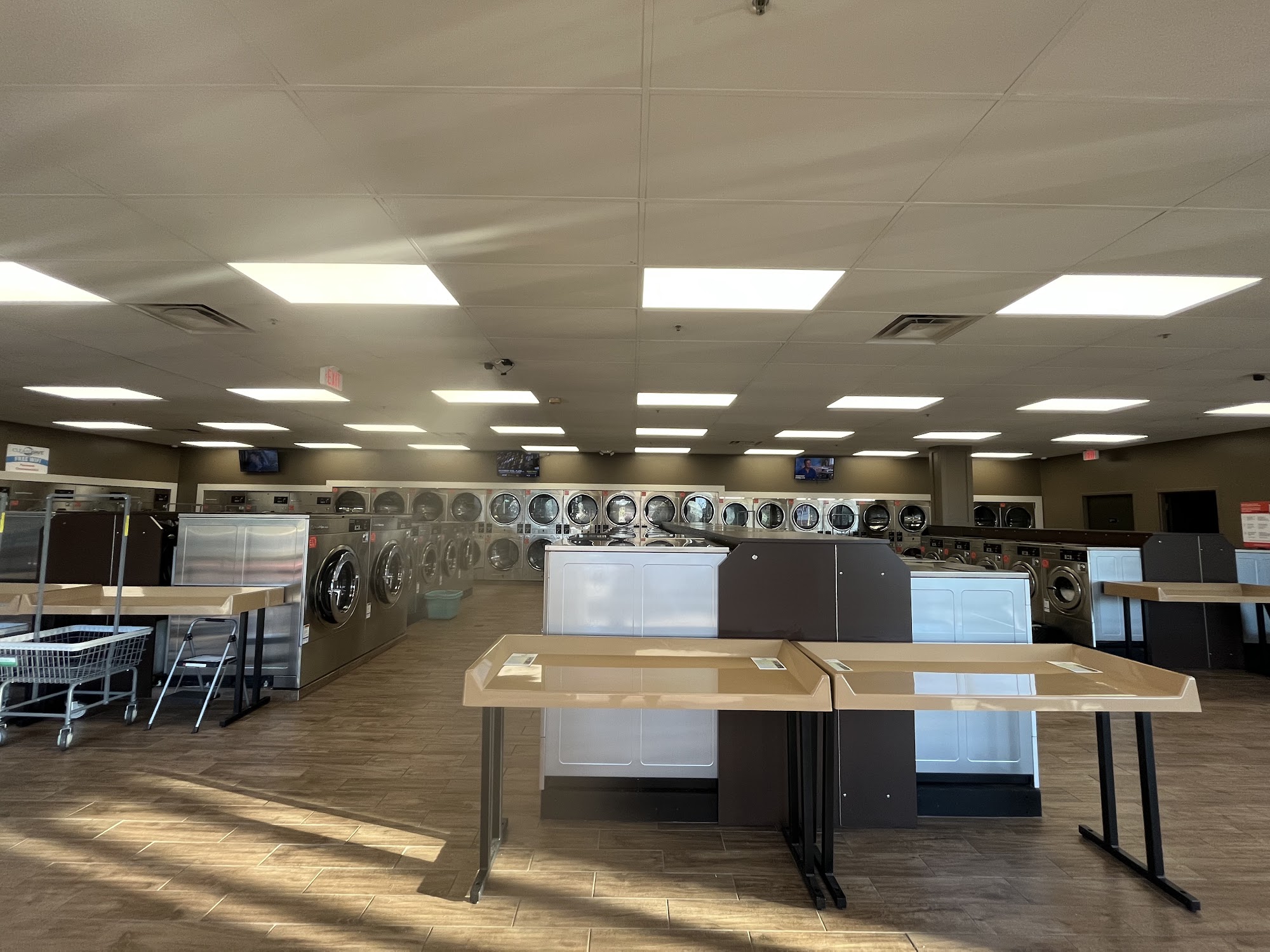 Clean, quiet and entertainment was available. As I hadn't been to a laundromat in quite some time the owner was very helpful. I'll definitely be back to was my heavy bath rugs.