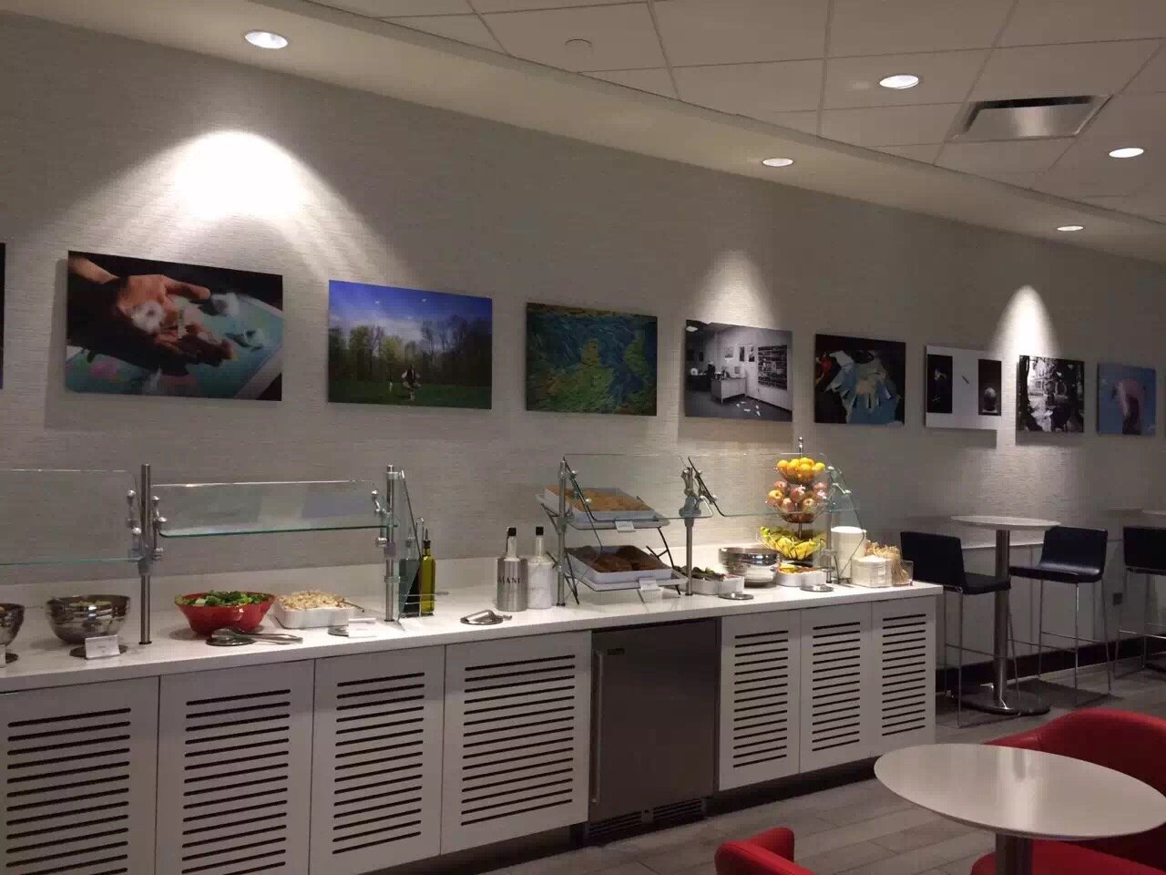 Delta offers a comfortable and welcoming lounge experience for travelers. The lounge features a large, spacious interior with plenty of seating, making it a good place to relax before flights. There is also a large outdoor area with comfortable seating and a nice breeze, though the air may smell of gasoline from nearby planes. The environment feels friendly and like coming home, with staff greeting guests warmly and providing attentive service. The food options are reliably good, including BBQ chicken in mustard sauce, BBQ pork ribs, mac and cheese, charcuterie, ready-made sandwiches, and a salad bar that is not very extensive. A lemonade bar allows guests to add fruit, syrup, and mint, and bags of good chips are available. The lounge also offers a variety of beverages, including an espresso martini (for an extra charge) and mimosas, with friendly bartenders who make the experience enjoyable. Service at Delta’s lounge is often highlighted as some of the best, with staff members being friendly, professional, and eager to assist. Notable staff members have made layovers more pleasant and helped travelers feel welcomed, even easing nerves for those traveling alone. Despite some minor issues like limited seating at times and unplugged power outlets, the overall atmosphere is positive, and many visitors recommend the lounge for its good food, clean environment, and friendly staff.