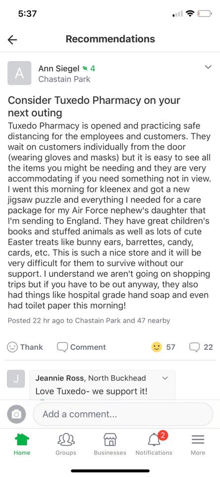 Love the level of service we get here--Very personal, very pleasant and always efficient! I always enjoy perusing their offerings and often find hard-to-find items and interesting gifts here. Love having Tuxedo pharmacy close by!