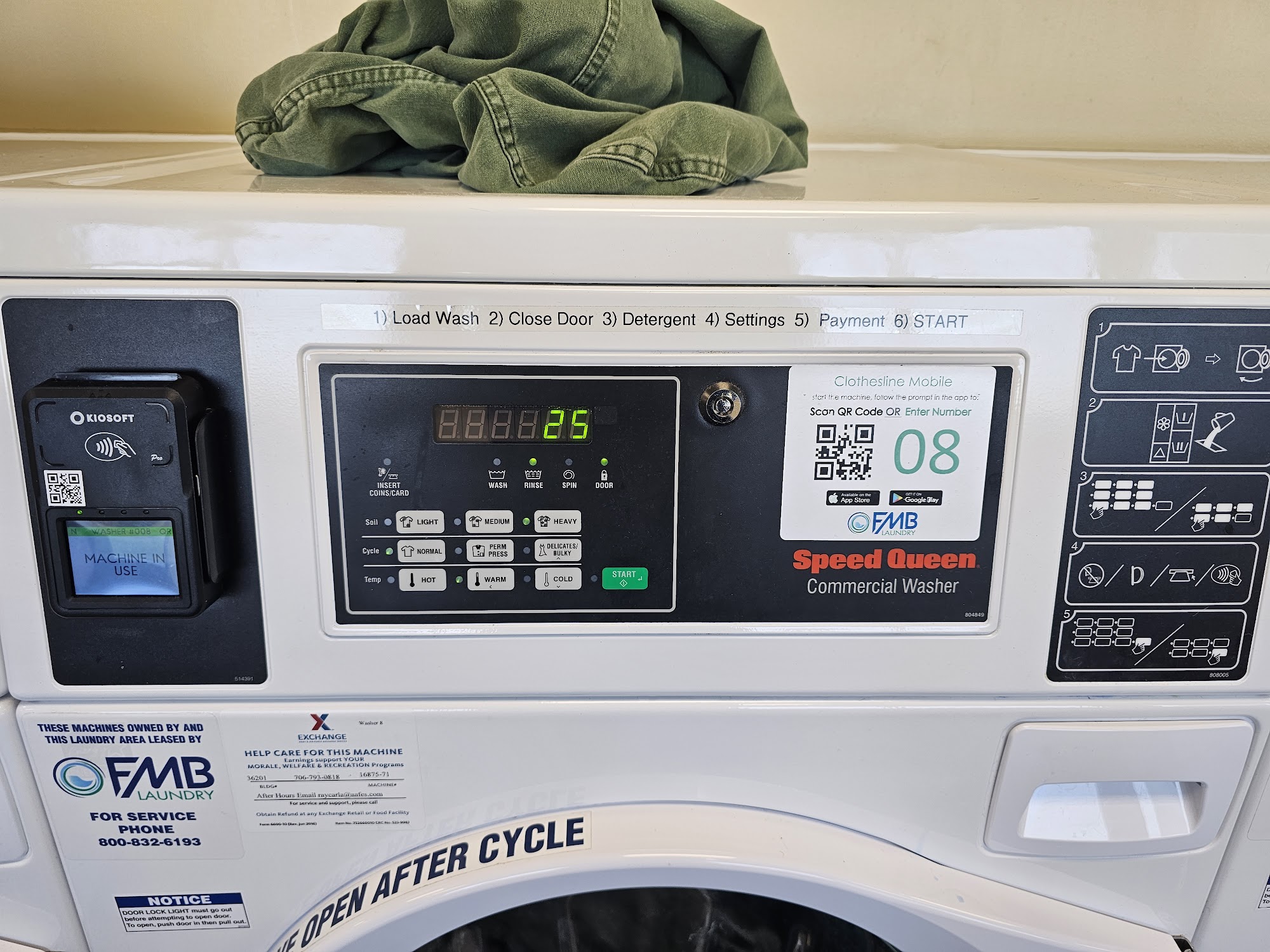 New and we'll functioning machines. Simple and very reasonable payment options. Clean area and located very close to the commissary and PX. And next to the Chinese restaurant.