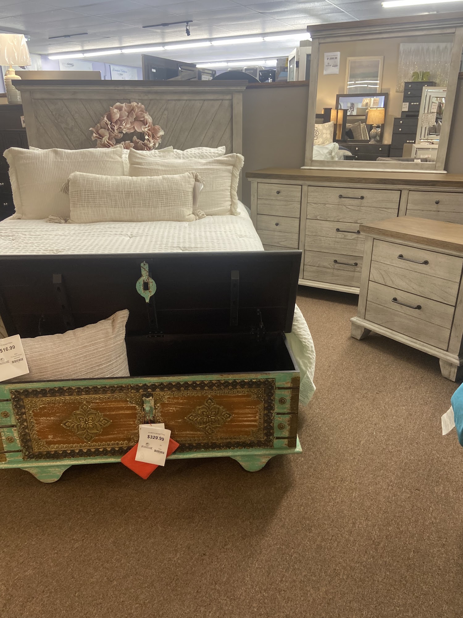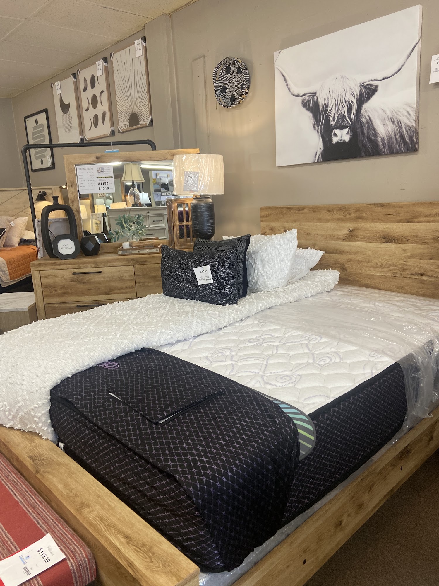 Very nice staff. Answered all questions. We bought a dining room table,mattress, bowstring, and bedframe. They even loaded it in our truck. I love this store.