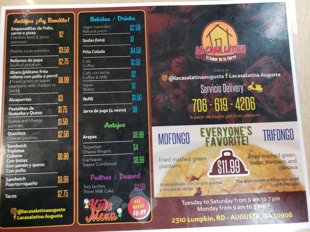 La Casa Latina is a cozy restaurant that offers delicious Caribbean and Latin American cuisine, including Puerto Rican favorites like the Puerto Rican corn fritters, Tres Golpes, and chicken dishes. The food is consistently praised for being spectacular, flavorful, and well-prepared, with authentic drinks like piña coladas. The staff are friendly and helpful, enhancing the dining experience. Customers also appreciate the attached store with Puerto Rican goodies, making it a great spot for shopping and dining. The restaurant is kid-friendly, with a specific menu section for children. Parking is plentiful, and the atmosphere is inviting, though some mention an issue with flies while eating. Overall, La Casa Latina is considered a hidden gem, delivering fast, quality service and tasty, authentic food that keeps customers returning.