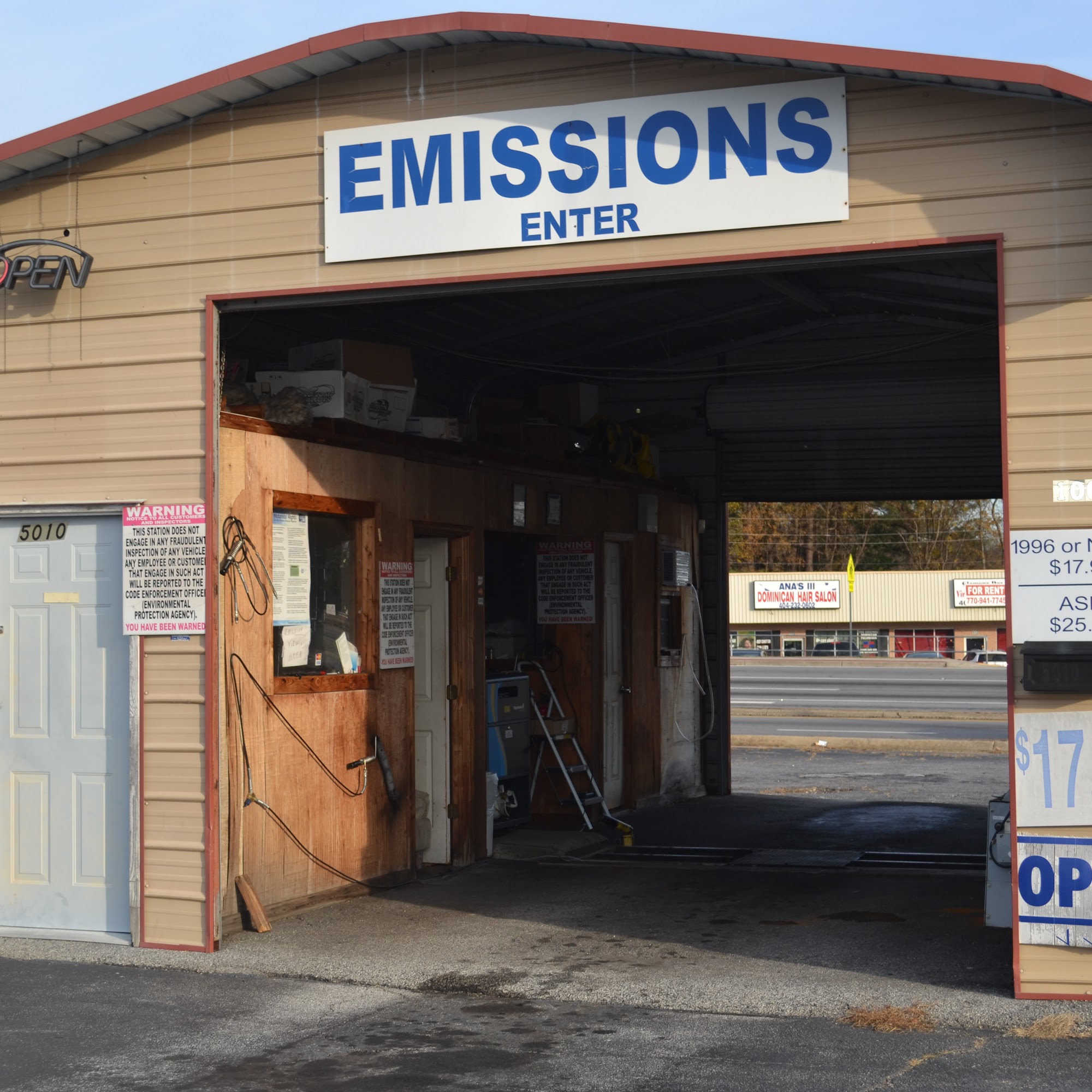 Lincoln Emission LLC is a standalone garage located at the Clay Plaza Shopping Center. They test 2001-2022 year vehicles for $17.99 and accept all forms of payment except checks. The staff is friendly and helpful. They are open on Saturdays and the testing process takes about five minutes. The location is convenient, near the MVD registration kiosk in Austell, allowing for quick testing and renewal. However, the garage's interior needs improvement.