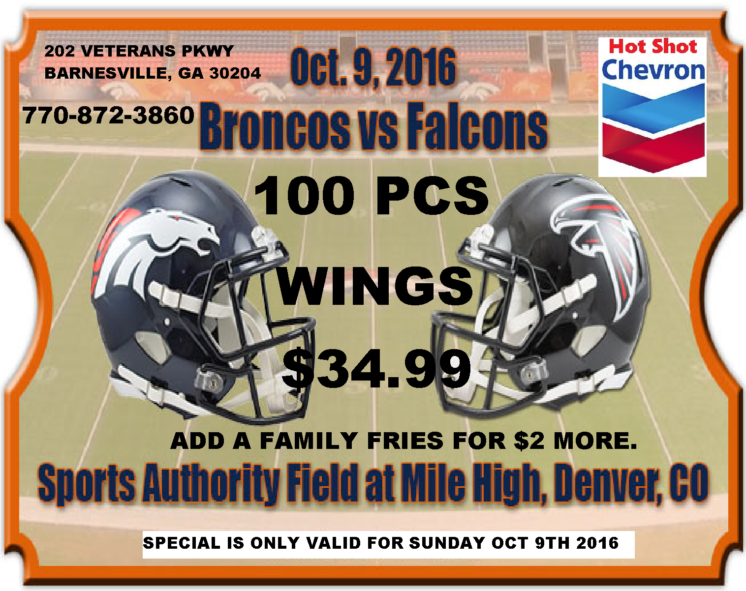 The best wings anywhere! !! Always cooked to order. Always a friendly staff ON FRIDAYS THEY HAVE DISCOUNTED GAS !!! The savings is worth the wait. Last week gas 1.89 a gallon.