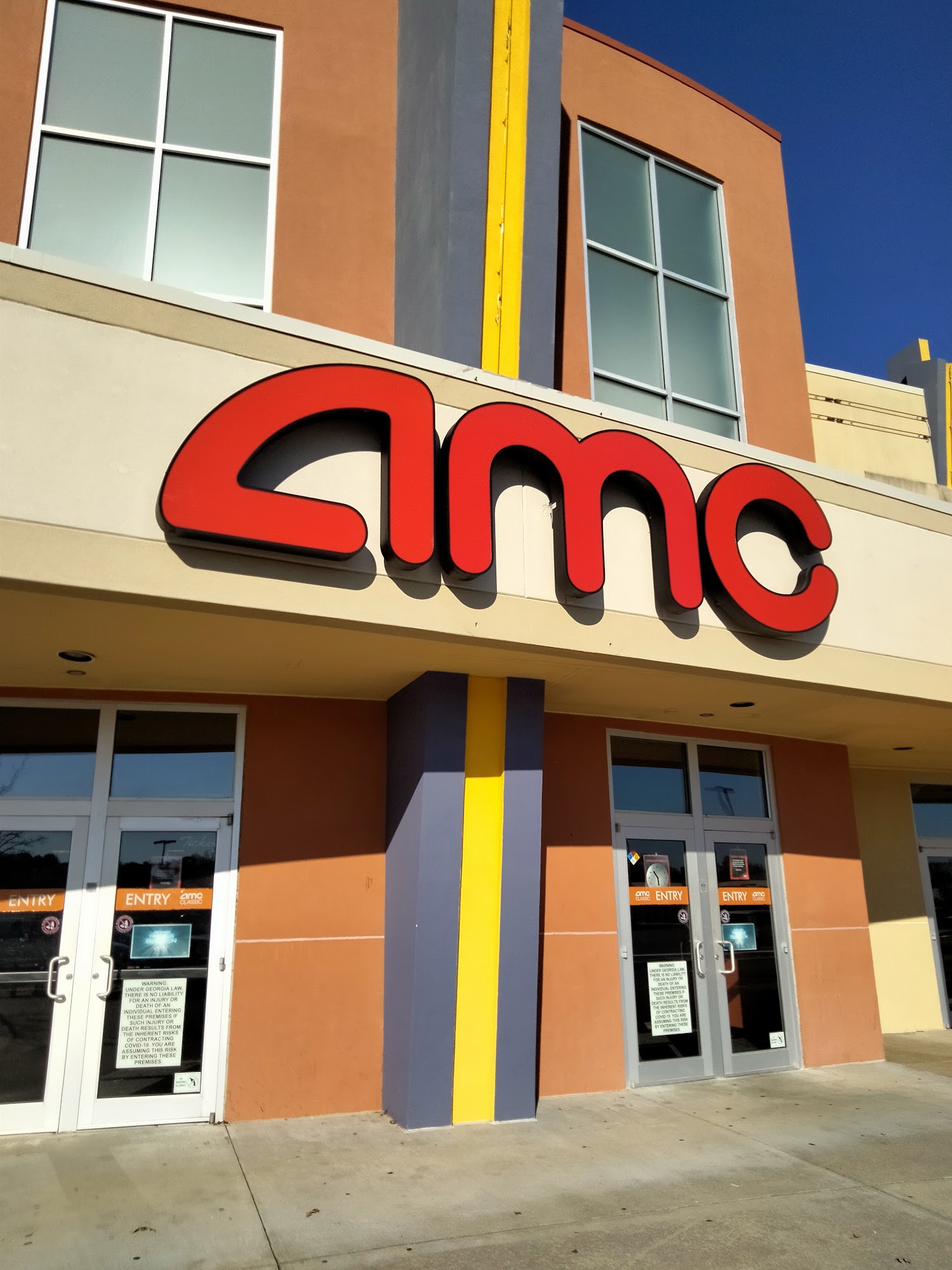 This is a nice AMC location. Clean restrooms and theater. It doesn't have the big comfortable seats like some other locations but it works. If you are an A-lister they will ask for ID.