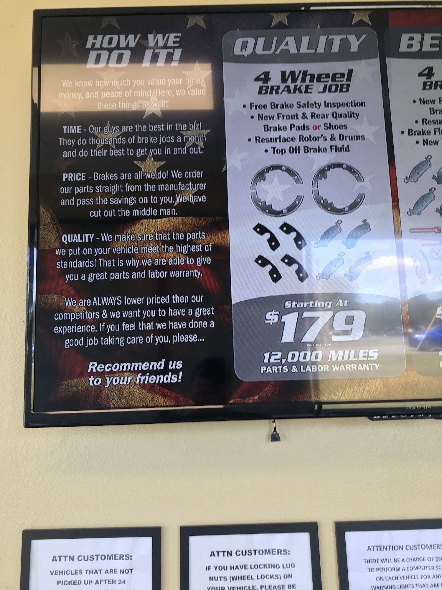 I was totally impressed. Great customer service. Told me exactly what I needed, and gave me options. Brakes were completed in a timely manner. I highly recommend them