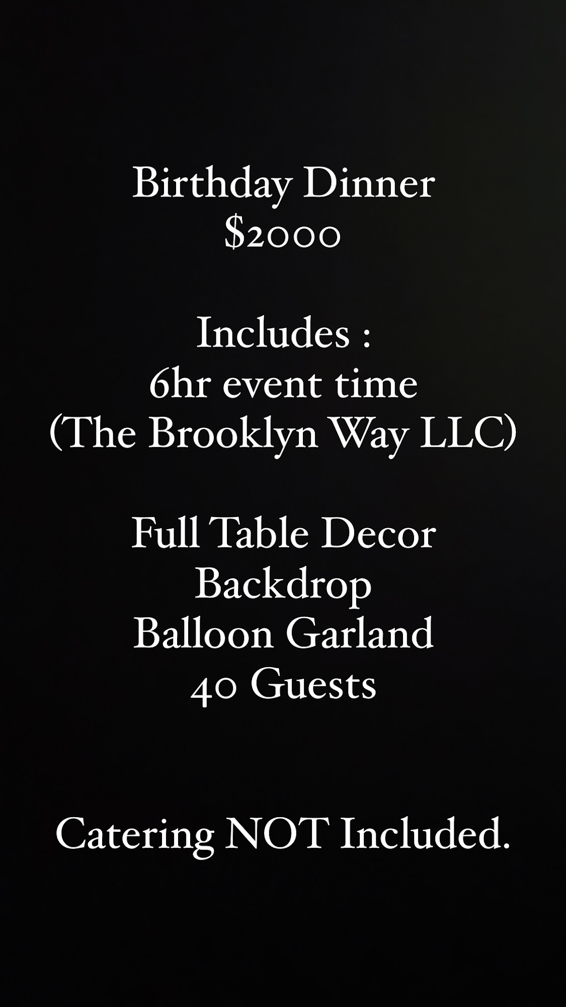 This is absolutely a fabulous establishment! The good, the atmosphere and the decor will take your private dinner or special occasion to the next level. I can not wait to have more from The Brooklyn Way.