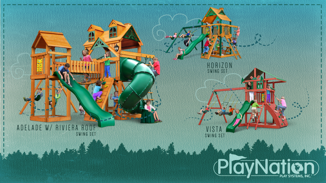 Beautiful selection of children's playsets for outdoors.