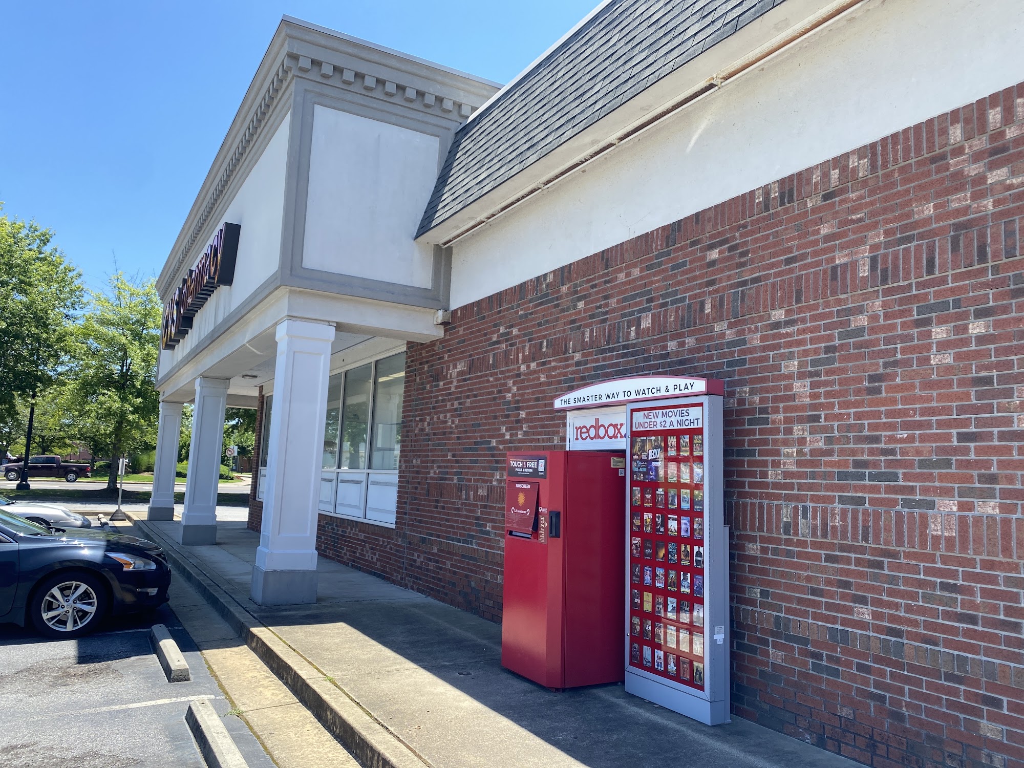 Single kiosk conveniently located outside CVS at main intersection