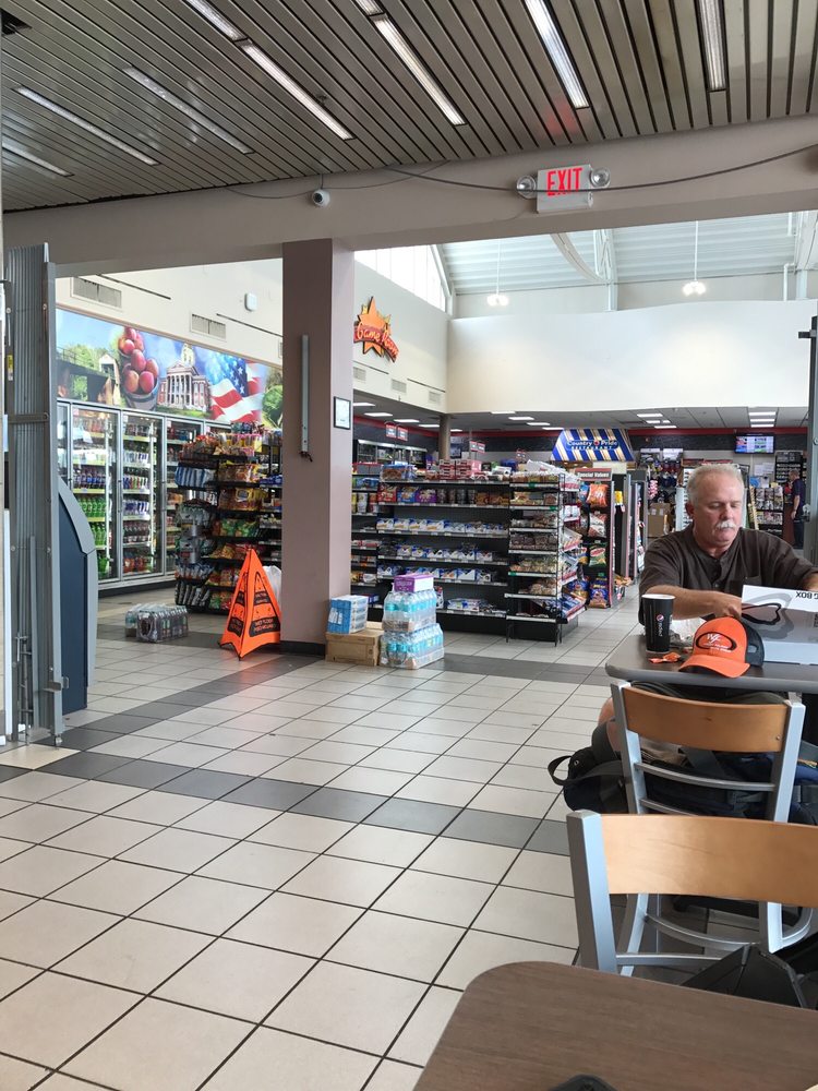Shower was roomy and clean but the water did not get hot. It was barely warm.. I had to hurry and get out the shower because I was cold! The Popeyes was okay. The chicken was hot and fresh. There is also a Burger King, Taco Bell, Pizza Hut Express, and IHOP inside. The Pilot is right across the street and has McDonald's...