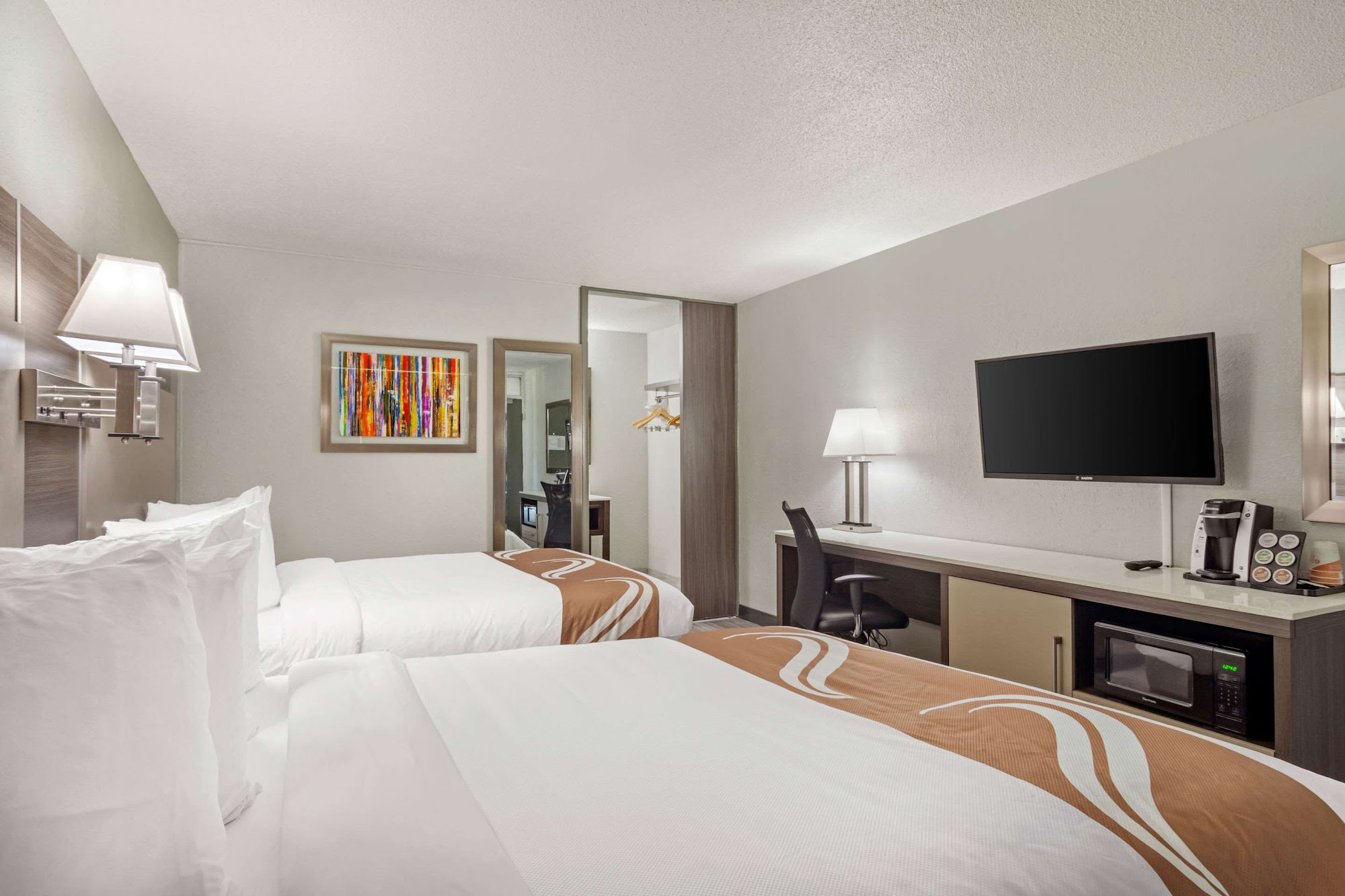 Quality Inn & Suites Cartersville South is an affordable hotel undergoing renovations, with some rooms featuring updated furniture, beds, and TVs. Reviews note the friendly staff and that the location is safe, with police patrols and many restaurants within walking distance. Experiences vary: some guests found it clean and beautiful, while others reported issues like an empty pool, a skimpy breakfast, or maintenance problems with bathroom doors, faucets, and tubs. The property is considered dog-friendly and can accommodate trucks with trailers. Many guests indicate they would stay again, especially once renovations are complete.
