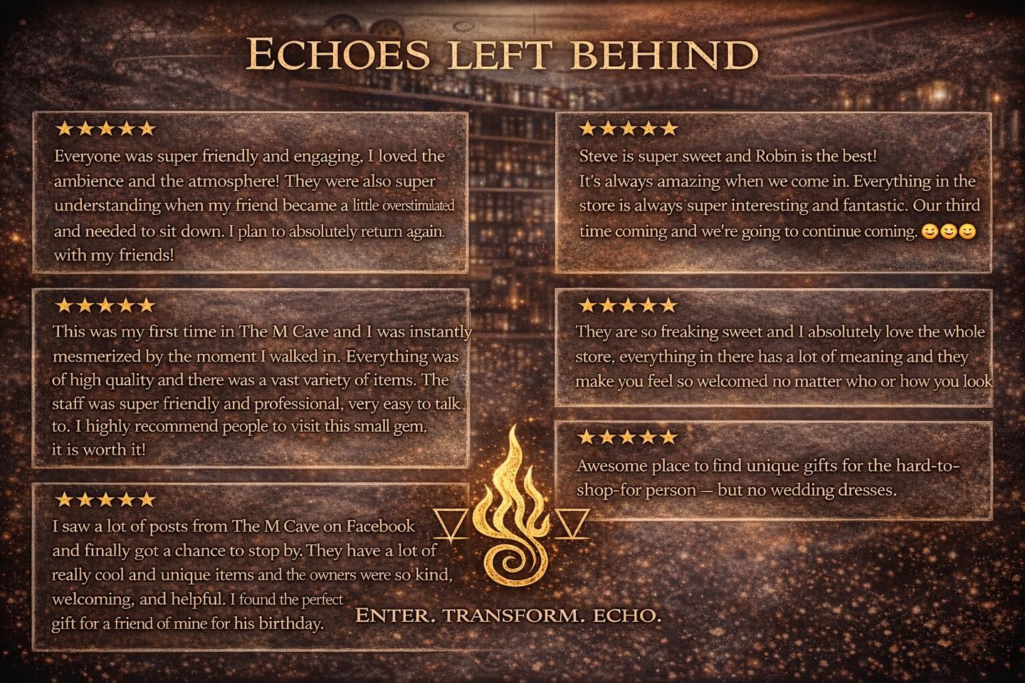 The )M( Cave is a unique spiritual gift shop and alternative boutique that offers a wide range of interesting and meaningful items. Visitors can find rare gifts, gothic and new age finds, sacred symbols, healing crystals, and other pieces that tell a story. The store creates an inviting atmosphere where past and present meet, appealing to curious explorers and seekers alike. Customers often praise the friendly and welcoming staff, describing them as fun, sweet, and accommodating. Many mention that the store is a small gem filled with high-quality, fantastic items that evoke a sense of magic and wonder. Whether shopping for witchy things or unique gifts, visitors feel comfortable and valued, making each visit a memorable experience. The )M( Cave is celebrated for its interesting selection, meaningful pieces, and the warm hospitality of its owners, making it a special place for those interested in spirit, history, and imagination.