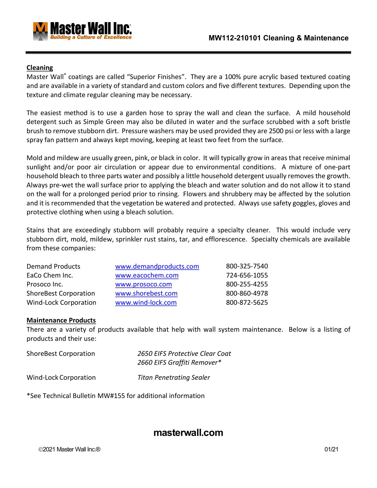 Master Wall Inc. is a reputable and reliable company that has been providing high-quality products and exceptional customer service for over 15 years. Customers have consistently praised the company's product consistency, tremendous support, and close personal working relationships with the staff. Master Wall is described as a "joy to work with," and its products are highly regarded for their excellent finished texture and open time, which helps combat worker shortages. The company's employees are known for their product knowledge and willingness to go the extra mile to assist customers.