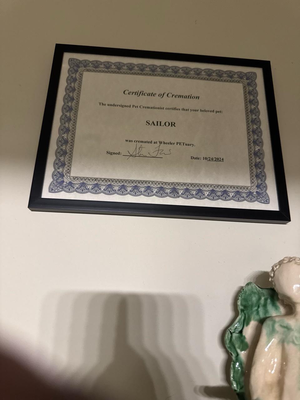 Great experience. They were compassionate and contacted me every step of the way. RIP Sailor, I love and miss you always and forever 🌈 .