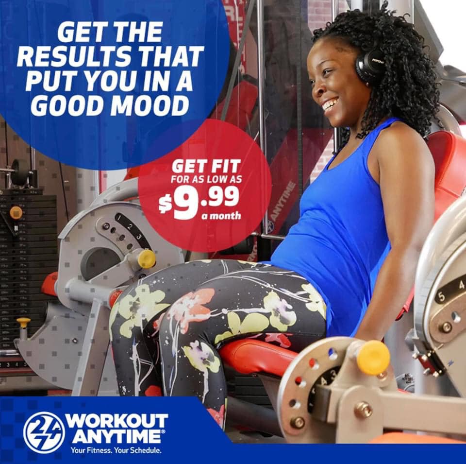 Like all Workout Anytime clubs across the country, we are locally owned and operated. We are fully committed to helping our members reach their fitness and wellness goals. At Workout Anytime our members experience real results in a positive and professional environment. We offer 24-hour member access, certified personal trainers, indoor tanning, HydroMassage, Matrix strength training, rows of cardio - including: treadmills, ellipticals, stair climbers, & stationary bikes; dedicated plate weight area, flat screen televisions, shower & locker facilities, free Wi-Fi access for members, use of all Workout Anytime locations across the country, guest privileges and monthly fitness evaluations.