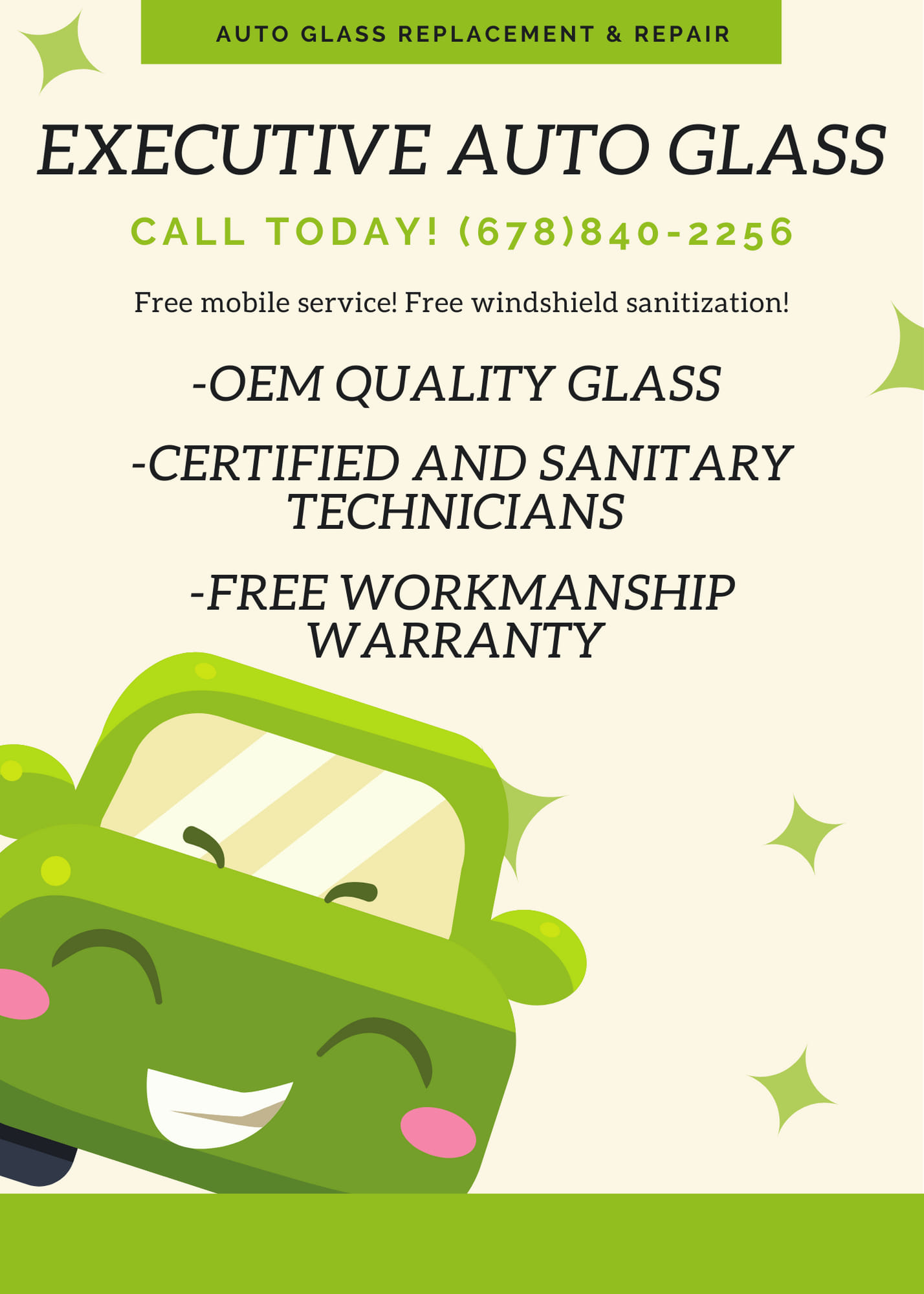 Executive Auto Glass is a full-service auto glass repair and replacement company that has proudly provided mobile service to customers in metro Atlanta and North Georgia since 2009. As a preferred service provider to all major insurance companies, they use only OEM certified parts and materials for a top-quality installation every time. Customers have praised the company's fantastic service, affordability, and professional and quality work. One customer with a Wrangler, known for breaking windshields, has had two windshields replaced by Executive Auto Glass, and they stood behind their product when there was an issue with the first one. Another customer, who had a new 2022 Genesis G70, appreciated the time and effort the technician, Tim, took to ensure the windshield was installed properly and to help the customer understand the vehicle's water drainage system. Customers have also commended the company's excellent customer service, prompt communication, and overall satisfaction with the final result. Executive Auto Glass is Atlanta's first choice for auto glass service, providing reliable and professional service to their customers.